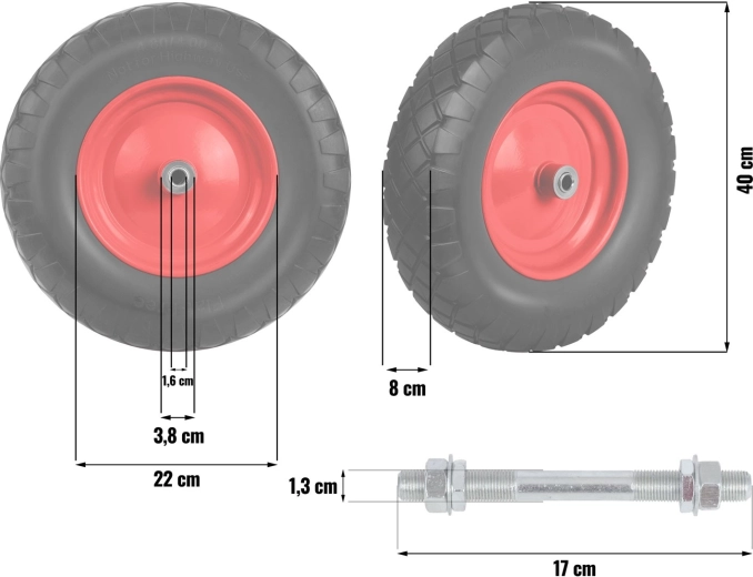 Univerzální bezdušové kolo Humberg pro kolečka a zahradní vozíky nabízí odolnou zesílenou ocelovou ráfek, galvanizovanou osu v balení a kuličková ložiska pro hladký chod. Kolo z trvanlivé PU pěny nevyžaduje huštění ani údržbu a je ideální pro náročné použití na zahradě, dílně i v provozech.
