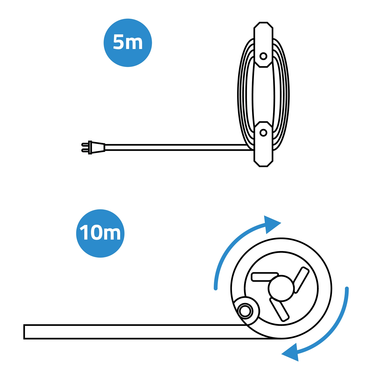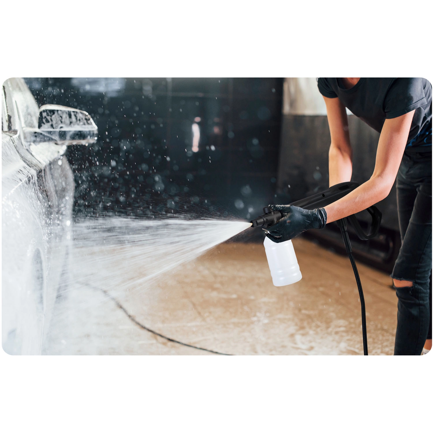 Bezpečnostní a úsporný systém StopAndSafe™ automaticky vypíná tlak po uvolnění spouště, šetří energii a vodu a chrání motor i čerpadlo před zbytečným opotřebením. Praktická konstrukce s držáky na příslušenství, 6m hadicí a 5m kabelem zajišťuje pohodlný dosah a snadnou manipulaci.