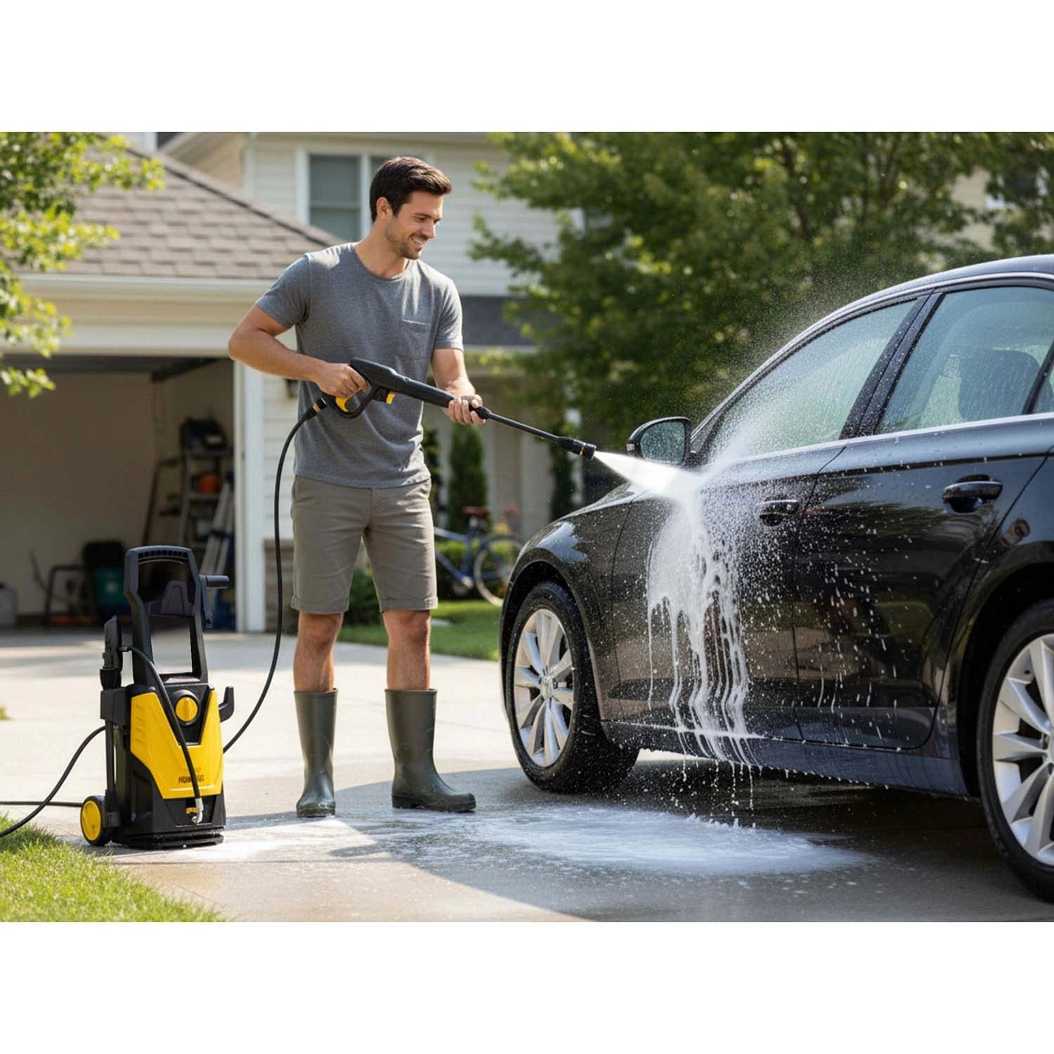 HUMBERG HM-300 je spolehlivý vysokotlaký čistič pro každodenní údržbu kolem domu. Hliníkové samonasávací čerpadlo umožňuje čerpat vodu i ze sudu nebo nádrže, takže jste nezávislí na vodovodním řadu. Díky regulovatelné trysce a turbotrysce TurboStream™ snadno odstraníte odolné nečistoty z dlažby, plotů i karoserie vozu. Pěnovač s objemem 450 ml rovnoměrně dávkuje detergent pro šetrné a efektivní mytí.