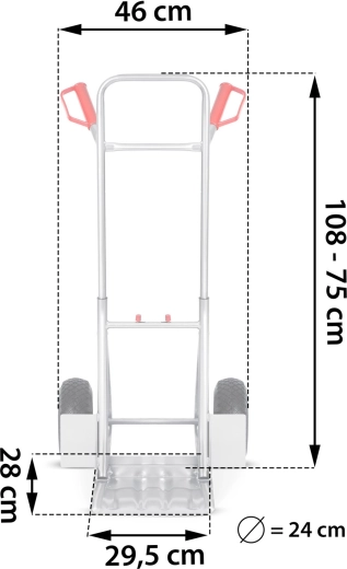 Díky nastavitelné výšce 75–108 cm a skládací spodní platformě snadno přizpůsobíte vozík velikosti nákladu a ušetříte místo při uskladnění. Pozinkovaný ocelový rám odolává korozi a opotřebení, PVC rukojeti poskytují pohodlný a bezpečný úchop i při delší manipulaci.
