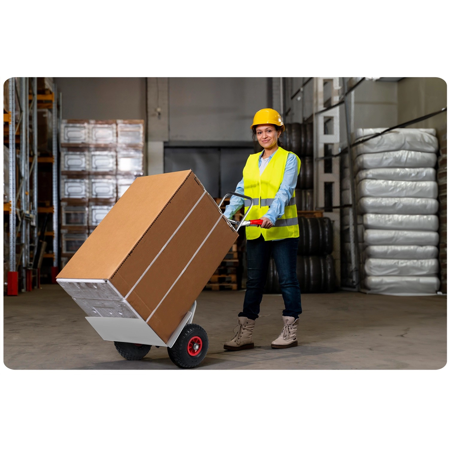 Tento odolný skládací rudl je navržen pro každodenní práci v logistice, retailu, cateringu i domácí dílně. Robustní konstrukce s nosností 150 kg zvládá těžké kartony, přepravky i sudy, zatímco dvě velká nafukovací kola zajišťují plynulý pohyb po dlažbě, betonu i nerovnostech.