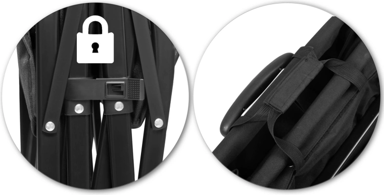- Bleskové složení do kompaktních rozměrů pro snadné uložení v kufru auta nebo v garáži.