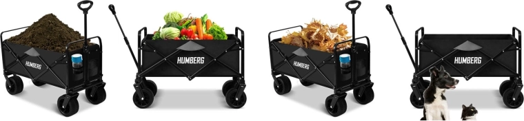 Skládací vozík HUMBERG je ideální volbou pro každodenní použití – od zahradních prací přes nákupy až po víkendové výlety. Robustní ocelový rám s práškovým lakem, hluboká textilní korba o objemu 100 l a velká terénní kola zajistí pohodlnou a bezpečnou přepravu nákladu až do 120 kg.