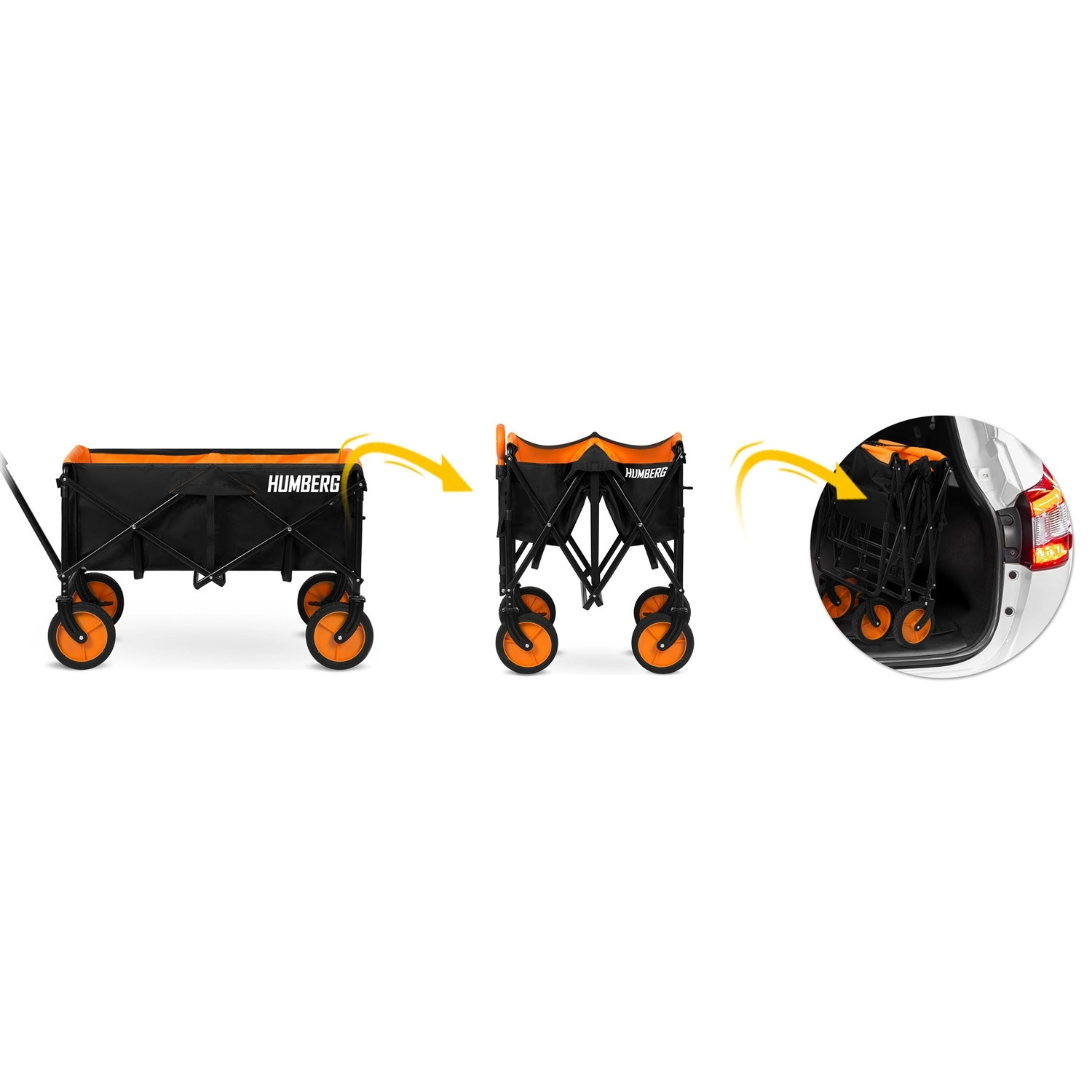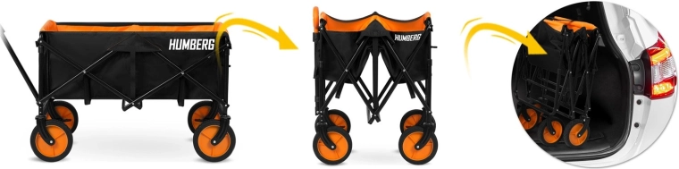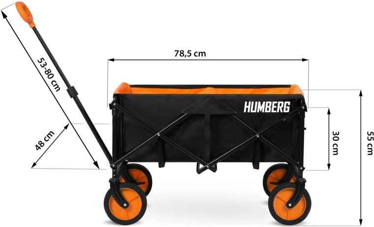 Skládací přepravní vozík HUMBERG je spolehlivý pomocník pro každodenní použití – od zahradničení přes kempování až po dovolenou u vody. Pevný ocelový rám s práškovým lakem odolá námaze, zatímco prostorná textilní korba o objemu 100 l pojme nářadí, nákupy i sportovní výbavu. Díky rychlému skládacímu mechanismu vozík složíte během okamžiku a snadno uložíte do kufru auta či komory.