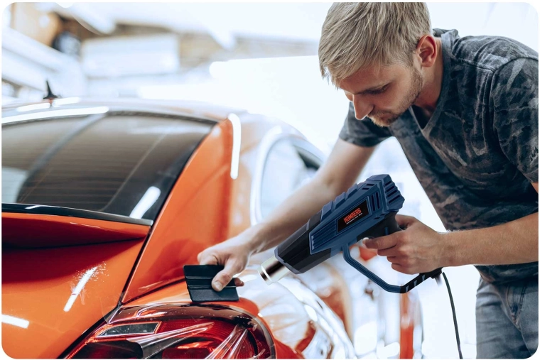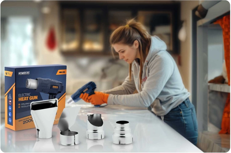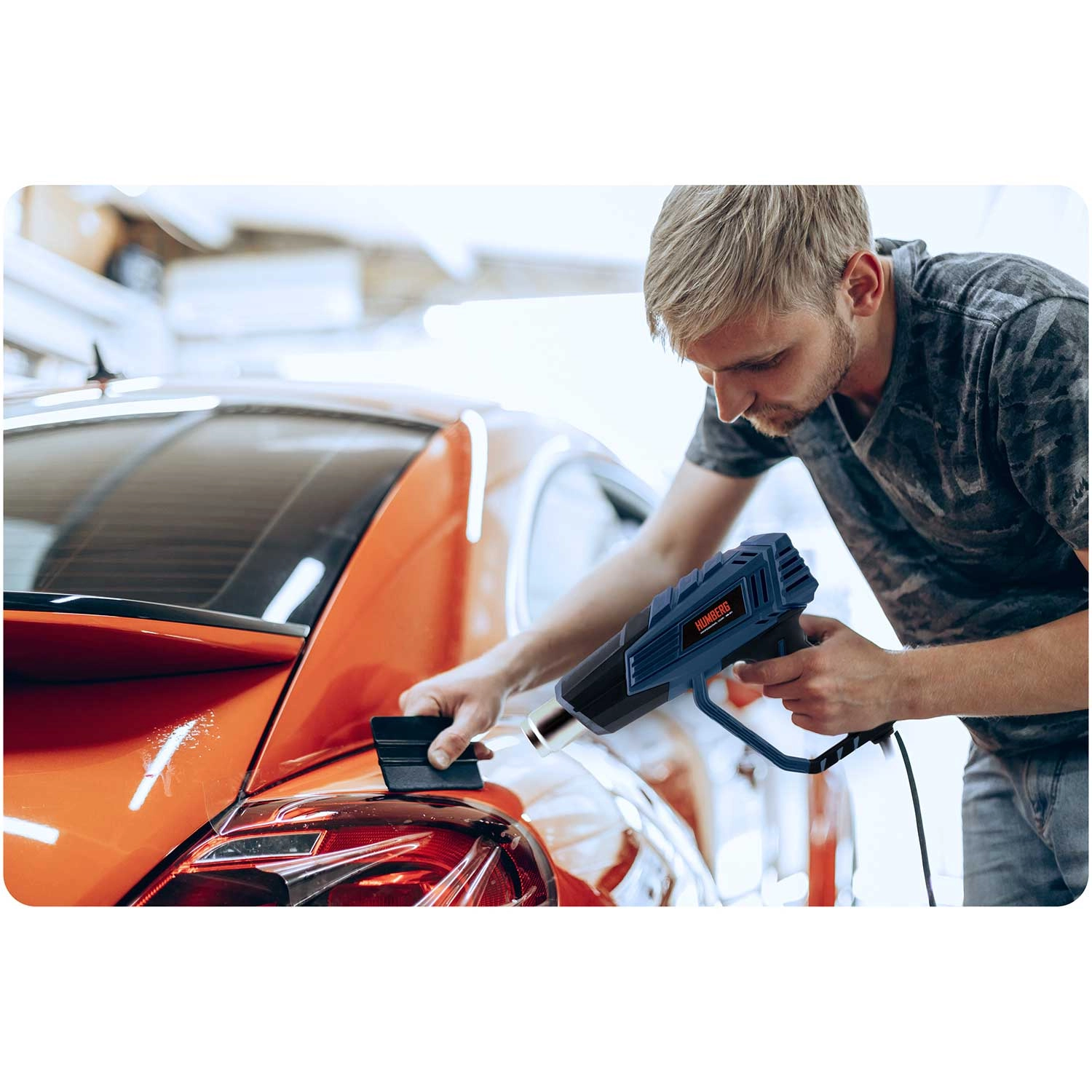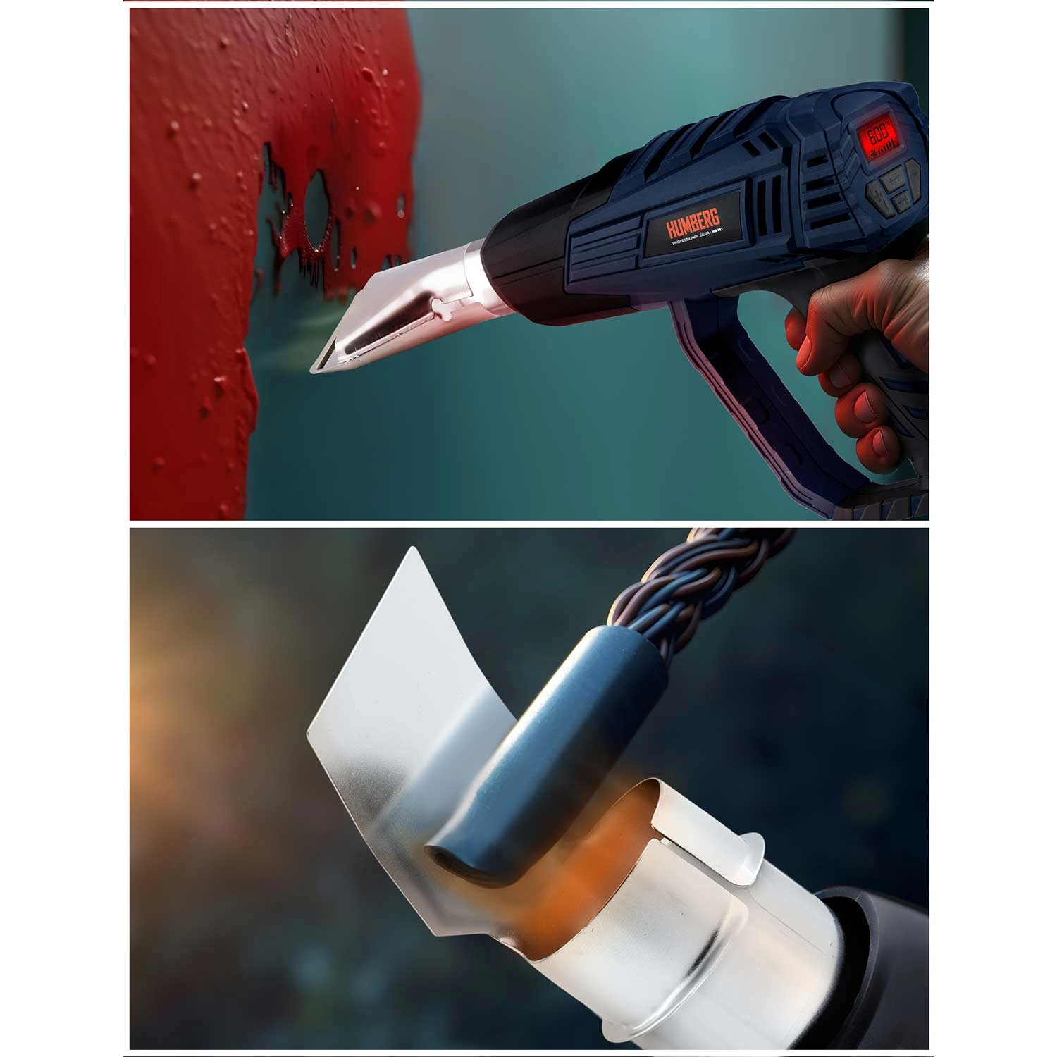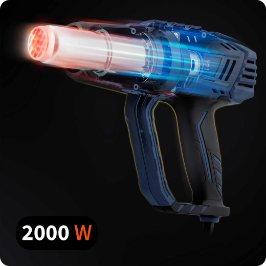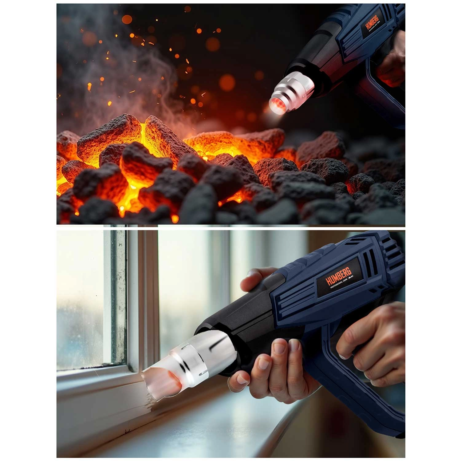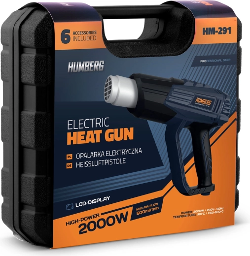 Horkovzdušná pistole HUMBERG je spolehlivý pomocník pro dílnu i domácnost. Díky příkonu 2000 W a přesné regulaci po krocích 60 °C snadno nastavíte optimální teplotu pro odstraňování starých nátěrů, sušení, rozmrazování, smršťování bužírek či tvarování plastů. Barevný LCD displej přehledně ukazuje zvolenou teplotu a pomocí změny barvy informuje o nahřívání a připravenosti k práci.