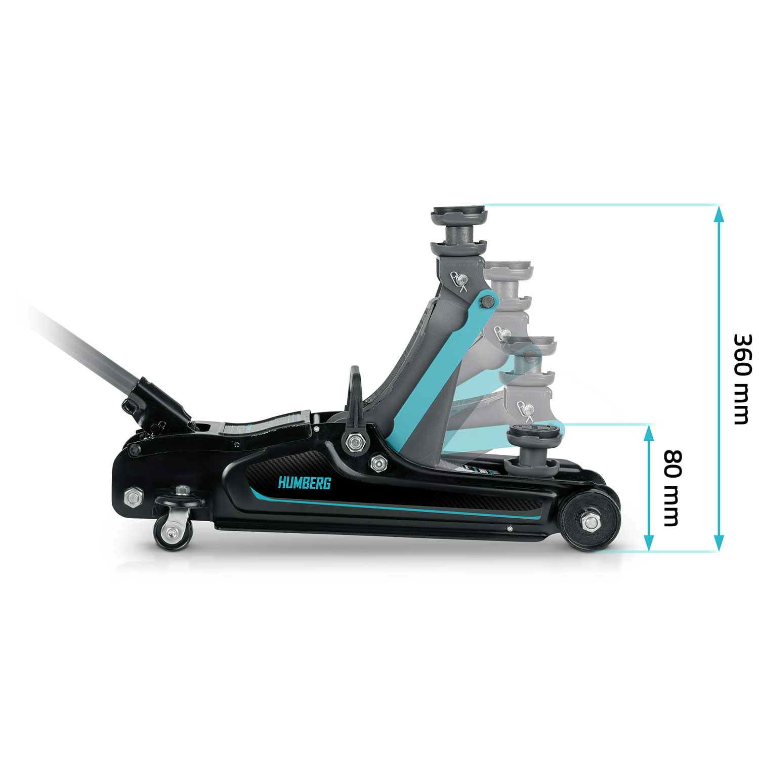 Dostaňte se bezpečně i pod nízké vozy díky minimální výšce 80 mm a zvedejte až do 360 mm pro pohodlný servis kol a podvozku.