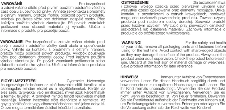 Hračka je vyrobena z potravinářského silikonu bez BPA, který je odolný, hygienický a snadno se čistí. Ergonomické rozměry usnadňují uchopení, zaoblené tvary minimalizují riziko poranění a tvarování prvků je navrženo tak, aby předcházelo vdechnutí.