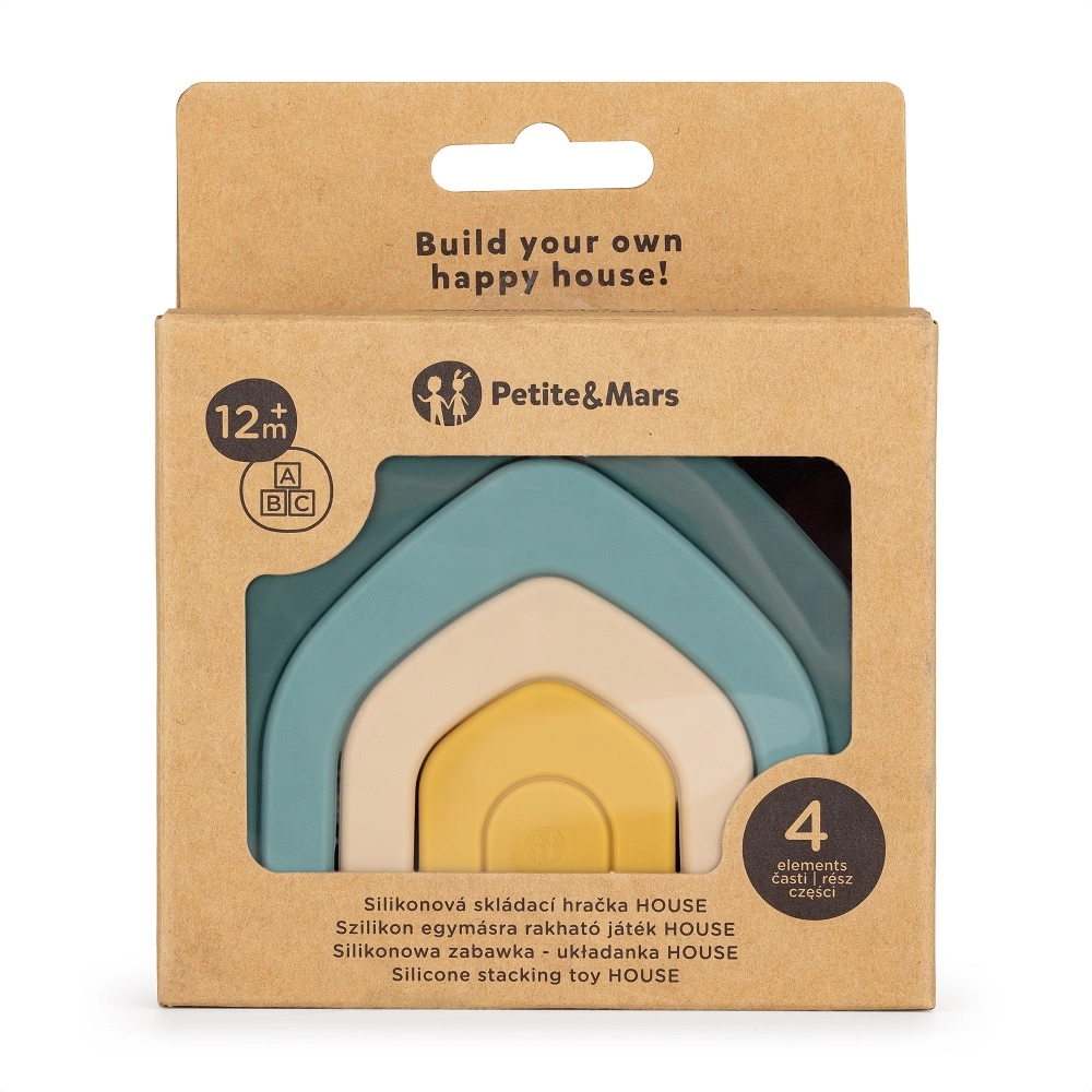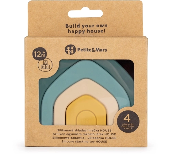 Objevte kreativní silikonovou skládací hračku HOUSE Misty Green od PETITE & MARS, která zábavnou formou rozvíjí jemnou motoriku, koordinaci oko–ruka a prostorovou představivost. Čtyři měkké oblouky z 100% potravinářského silikonu bez BPA se snadno skládají do tvaru domečku, jsou bezpečné, lehké, odolné a snadno omyvatelné. Ideální pro děti od 12 měsíců.