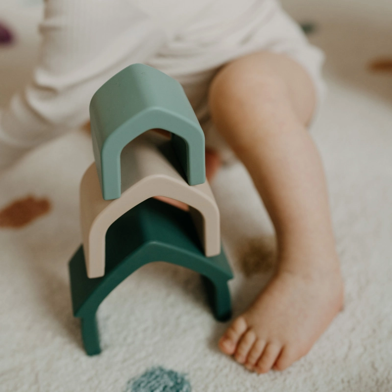 Oblouky jsou vyrobeny ze 100% potravinářského silikonu bez BPA – příjemné na dotek, odolné a vhodné pro bezpečné dětské hraní i kousání.