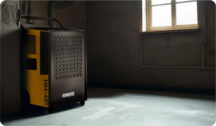 Profesionální průmyslový odvlhčovač vzduchu HUMBERG HM-481 s výkonem 50 l/24 h urychlí vysychání podlah, omítek a nátěrů i po záplavách. Nabízí tichý provoz 52 dB, vysokou mobilitu díky velkým kolům a madlům, hygrostat 20–90 % RH, 24h timer a možnost nepřetržitého odtoku kondenzátu (hadice v balení). Ekologické chladivo R290 a automatické odmrazování zajišťují spolehlivý provoz i v náročných podmínkách.