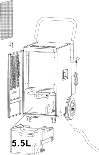 - Odvlhčovač, nádrž 5,5 l, hadice na kondenzát 4 m, návod