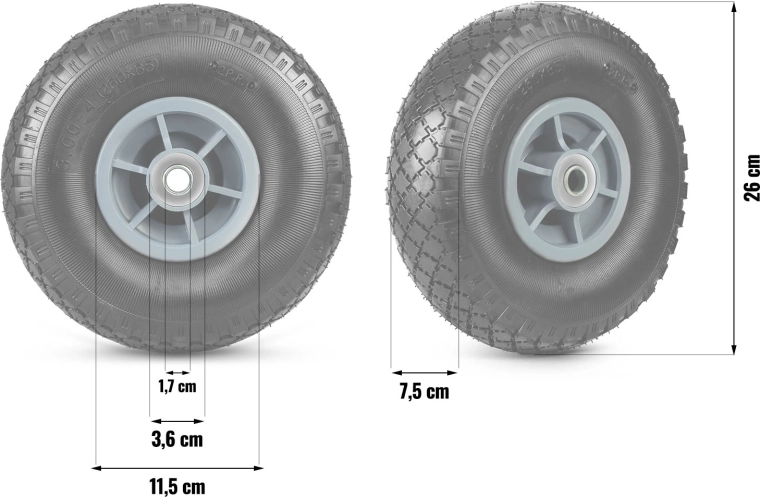 Univerzální kolo s duší Humberg je ideální volbou pro zahradní vozíky, kolečka a dílenské vozíky. Nabízí vyztužený ráfek, odolná kuličková ložiska a spolehlivou duši pro komfortní a stabilní jízdu.