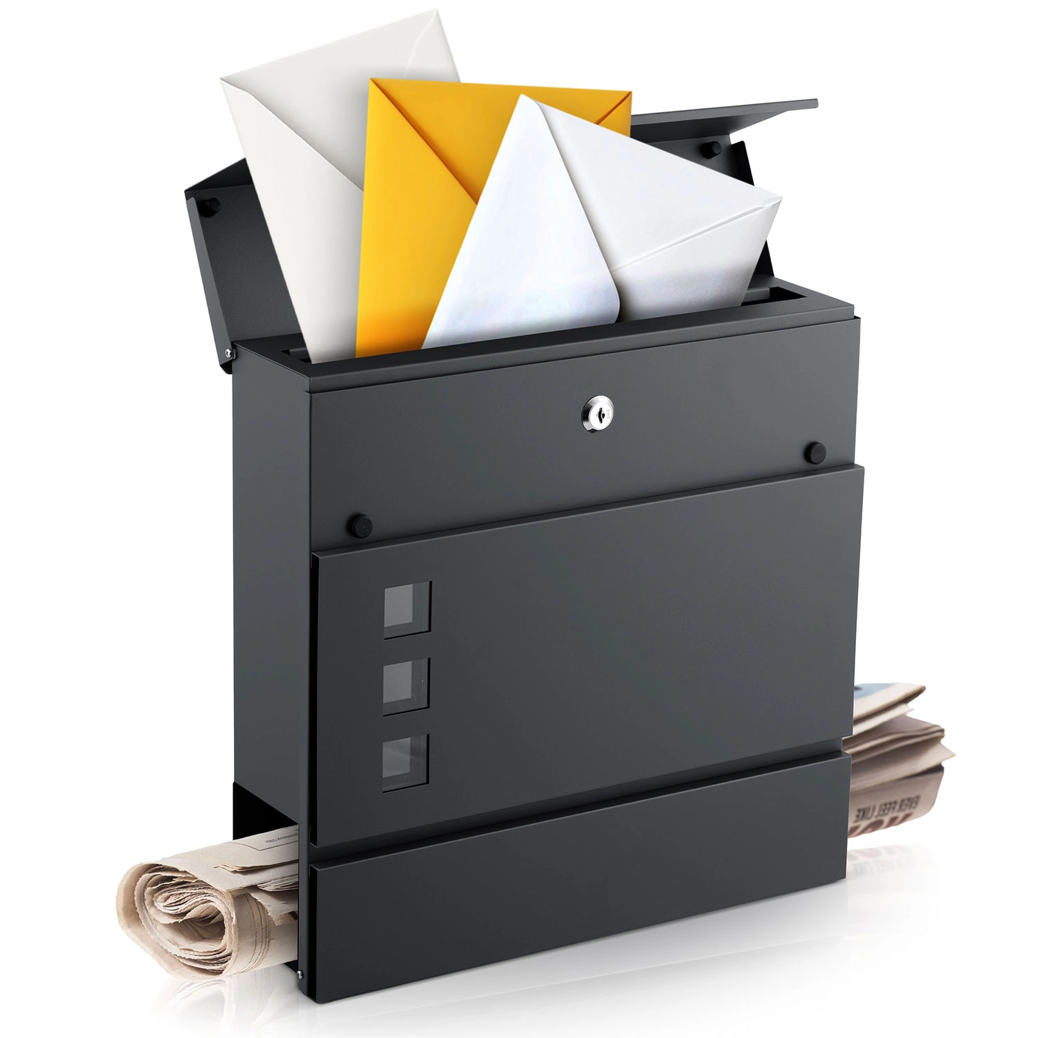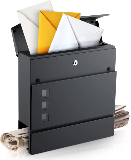 Nástěnná poštovní schránka s gazetníkem 37 × 37 × 10,5 cm antracit