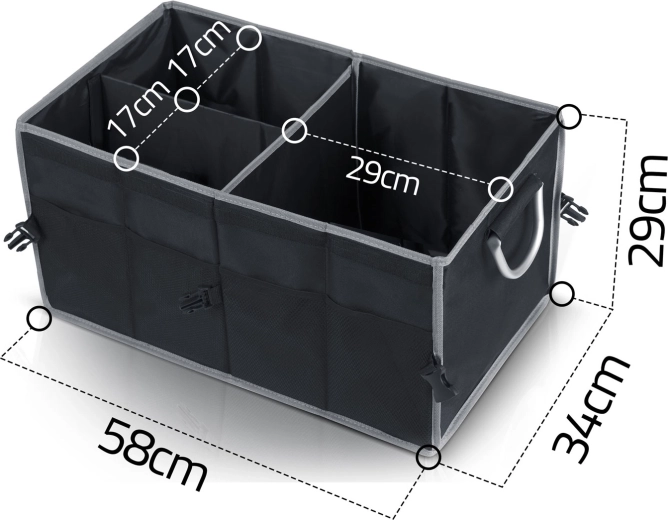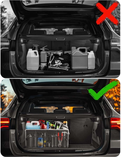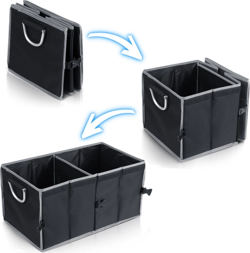 Proměňte chaos v dokonale organizovaný prostor. Organizér do kufru HUMBERG je navržen pro každodenní použití – na nákupy, nářadí, kabely, autokosmetiku i lékárničku. Modulární konstrukce umožní používat jednu nebo dvě komory, případně organizér zcela složit do plochého tvaru, když ho zrovna nepotřebujete. Odklápěcí a odnímatelné víko diskrétně skryje obsah a ochrání jej před prachem a sluncem.
