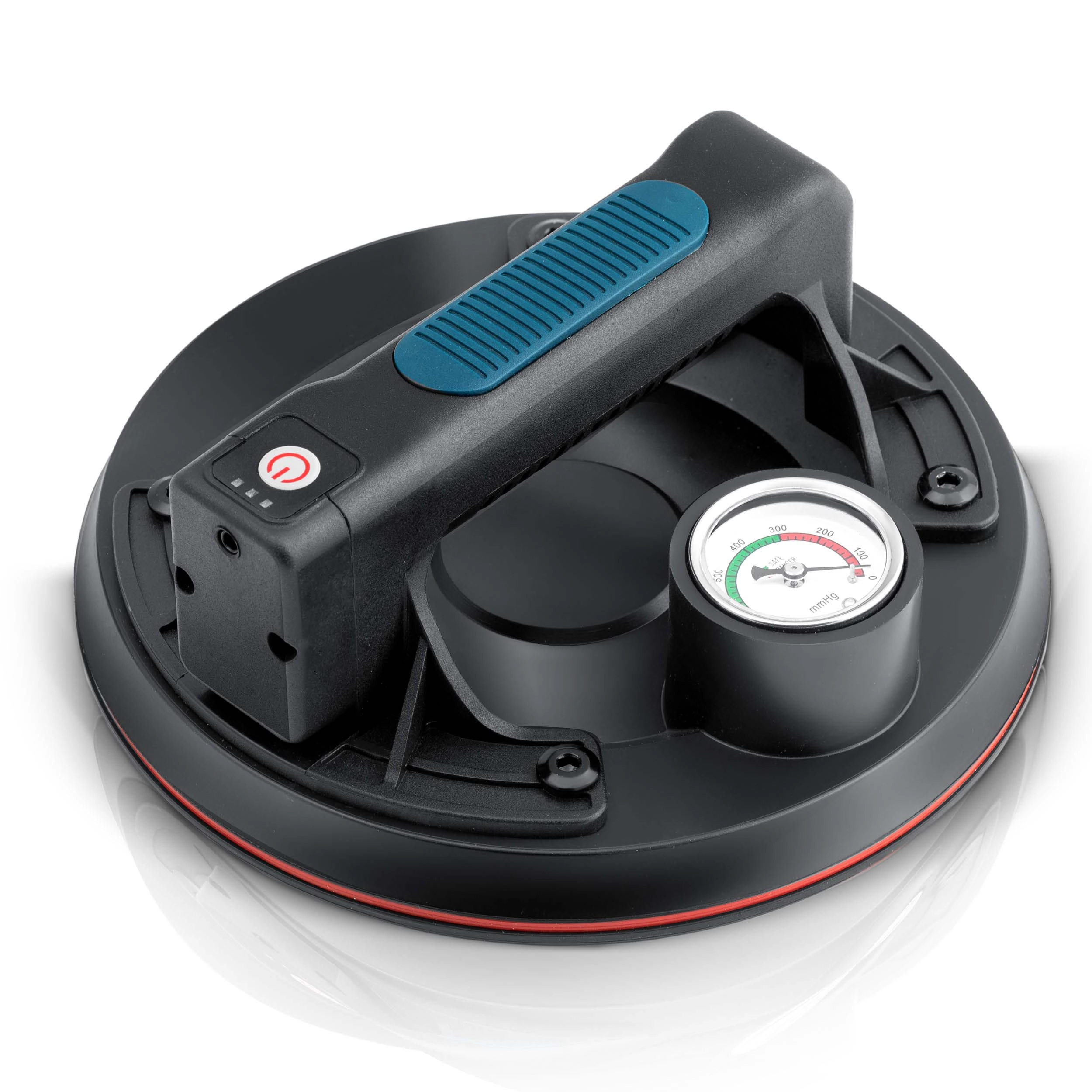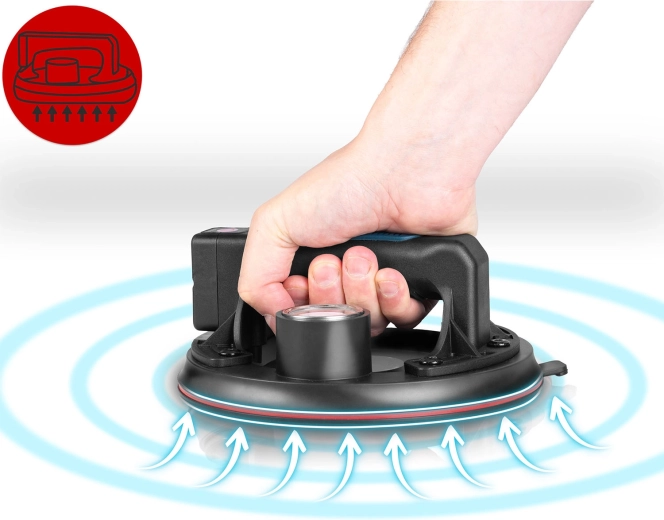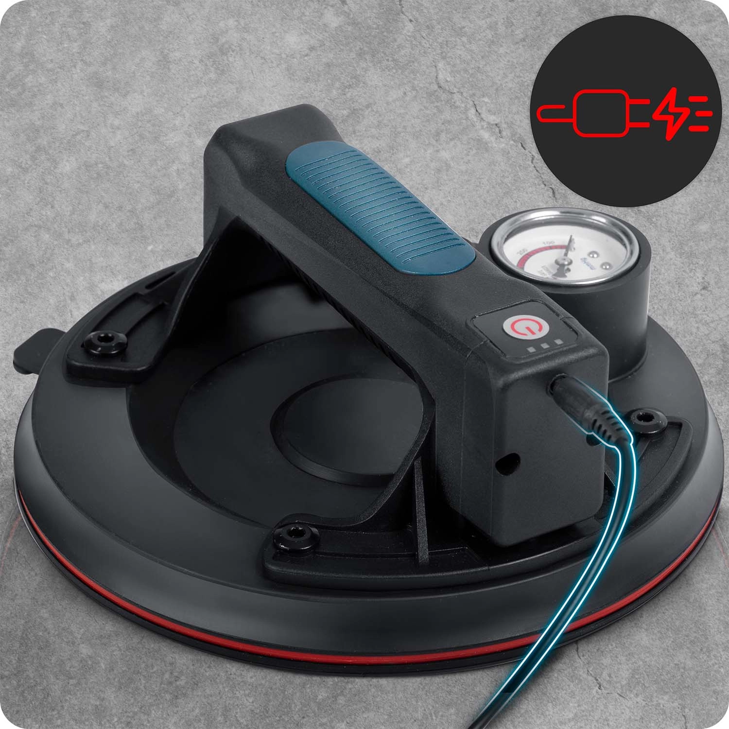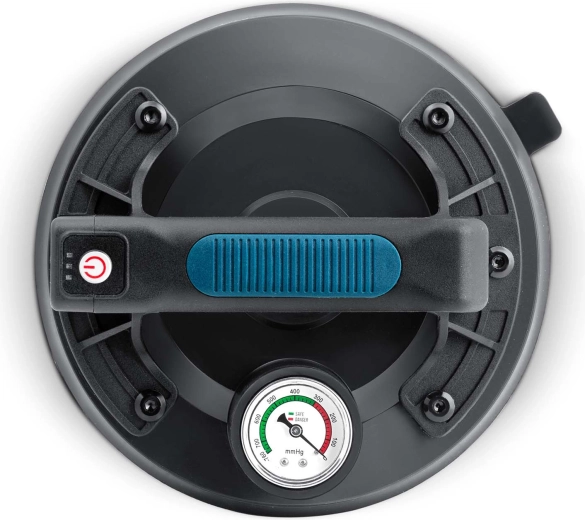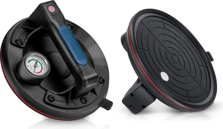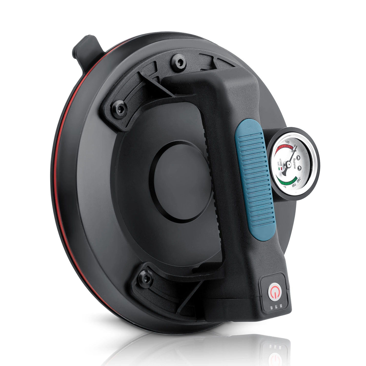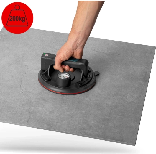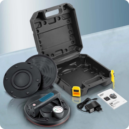 Tato kompaktní elektrická přísavka je navržena pro rychlou a bezpečnou manipulaci s těžkými panely, sklem, dlaždicemi či leštěným kamenem. Trojitá gumová těsnicí manžeta zajišťuje výbornou přilnavost, těsnost a tlumení vibrací, zatímco manometr s barevnou stupnicí poskytuje neustálou kontrolu nad úrovní podtlaku (optimálně 300–760 mmHg). Ergonomická rukojeť s tvarovaným úchopem zvyšuje pohodlí i při delší práci.