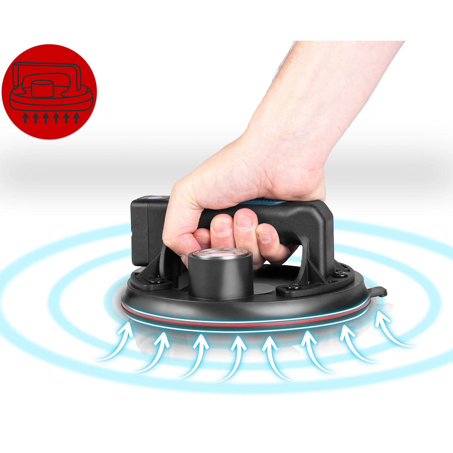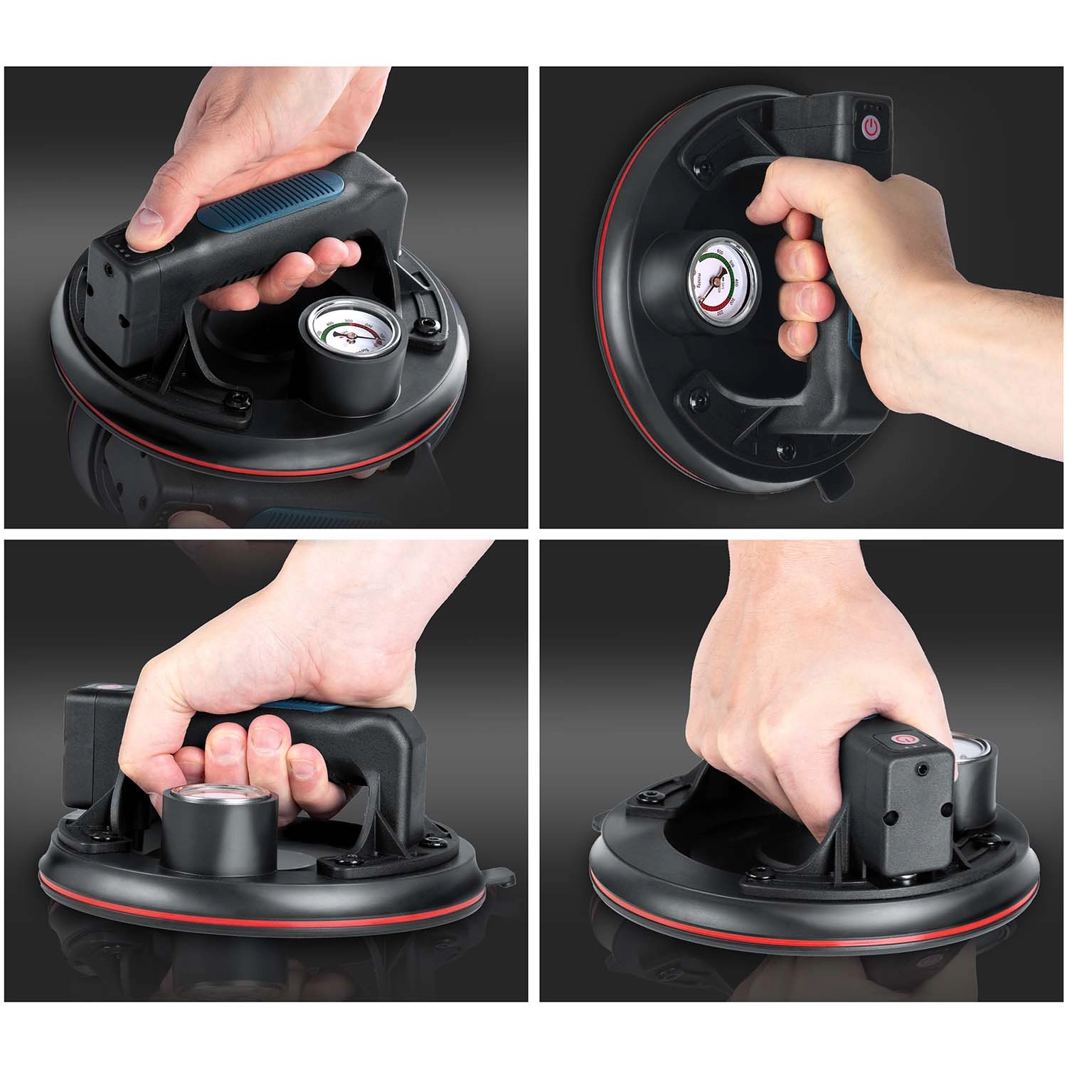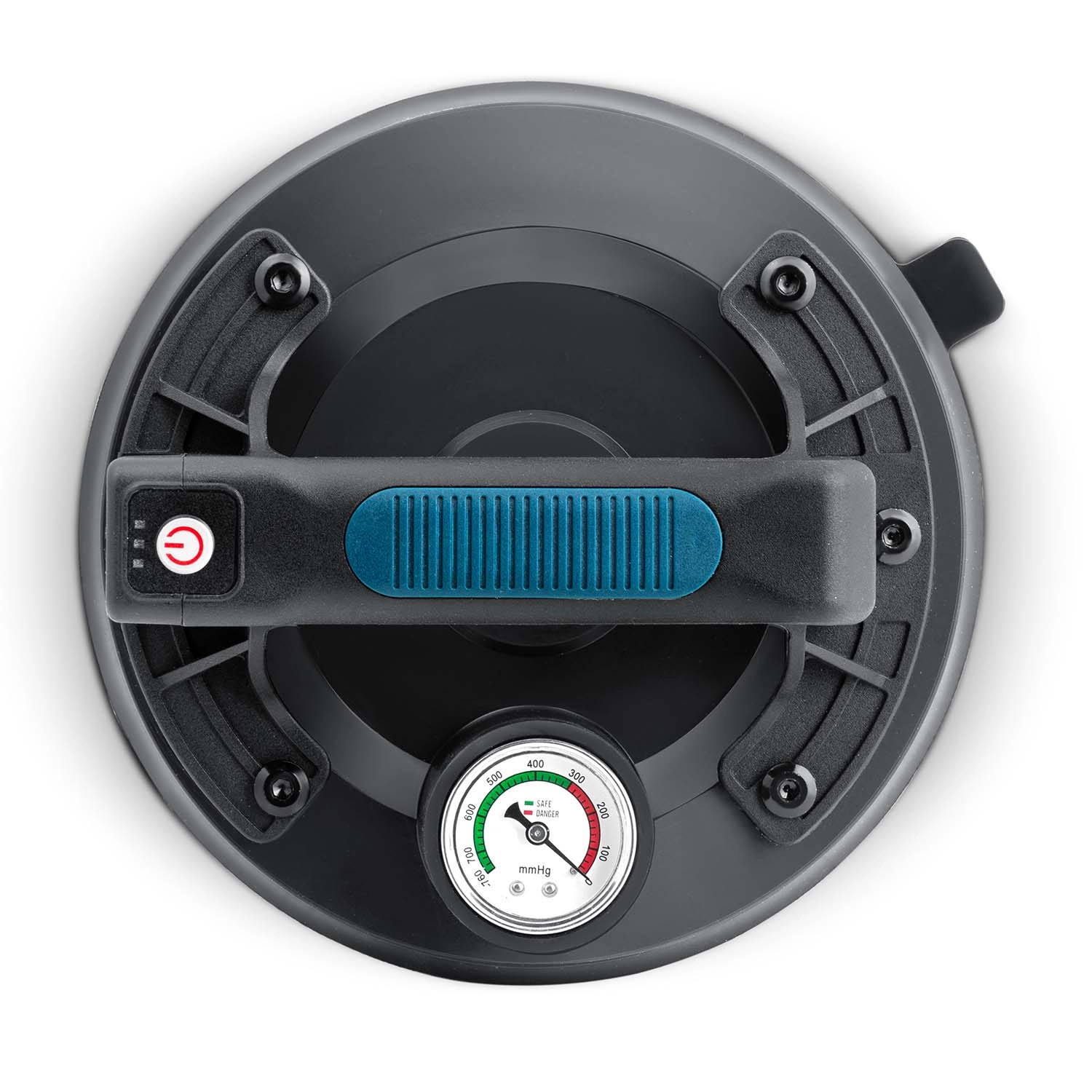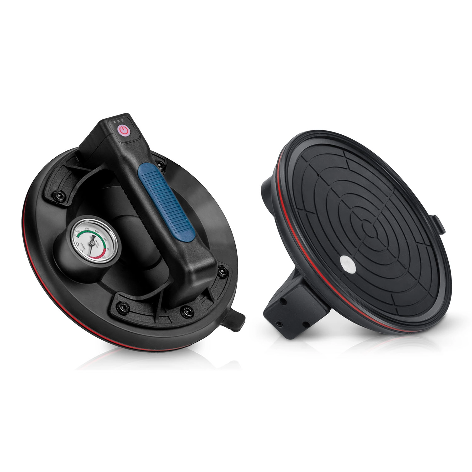Tato kompaktní elektrická přísavka je navržena pro rychlou a bezpečnou manipulaci s těžkými panely, sklem, dlaždicemi či leštěným kamenem. Trojitá gumová těsnicí manžeta zajišťuje výbornou přilnavost, těsnost a tlumení vibrací, zatímco manometr s barevnou stupnicí poskytuje neustálou kontrolu nad úrovní podtlaku (optimálně 300–760 mmHg). Ergonomická rukojeť s tvarovaným úchopem zvyšuje pohodlí i při delší práci.