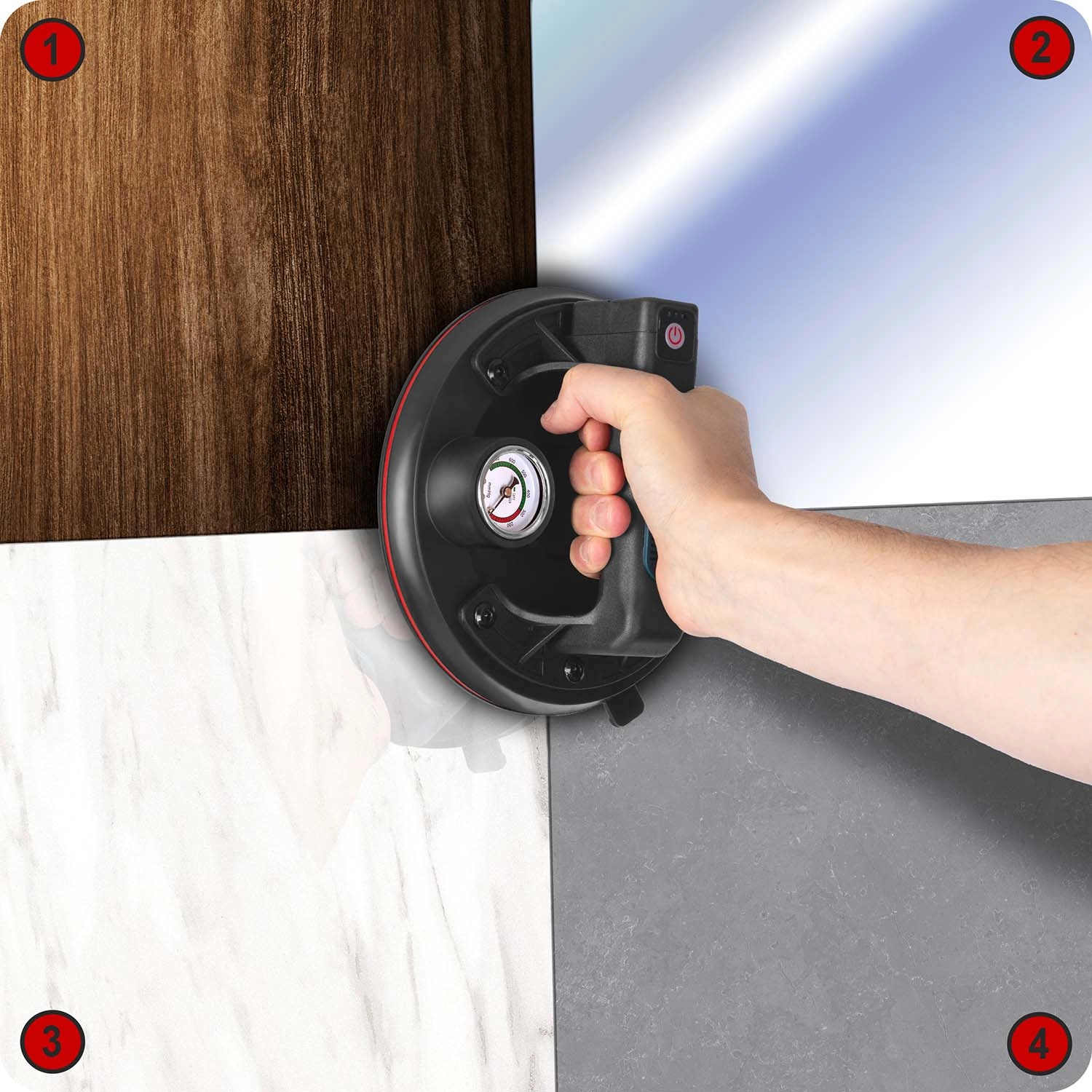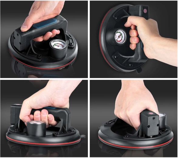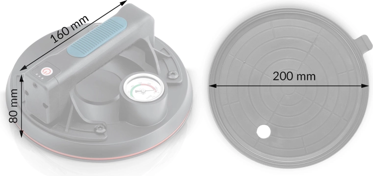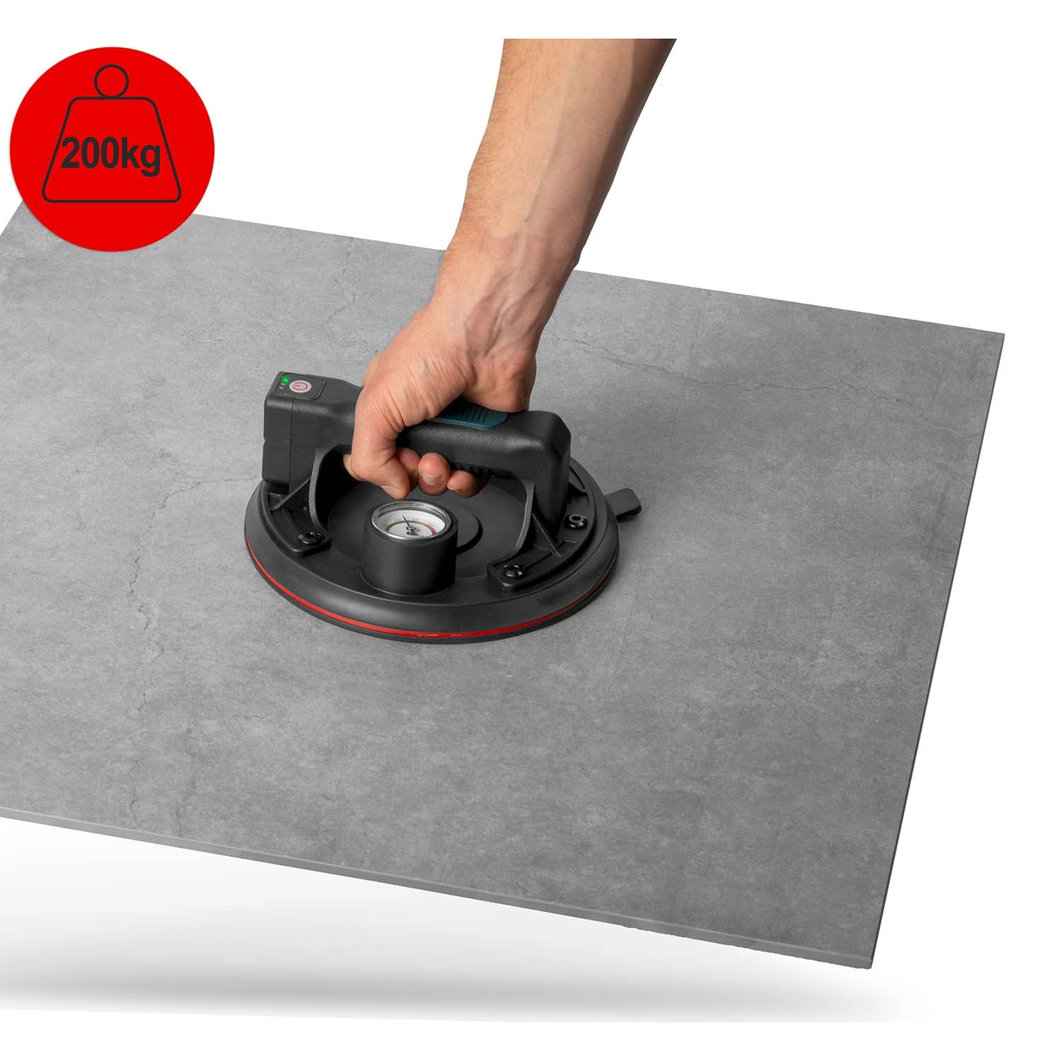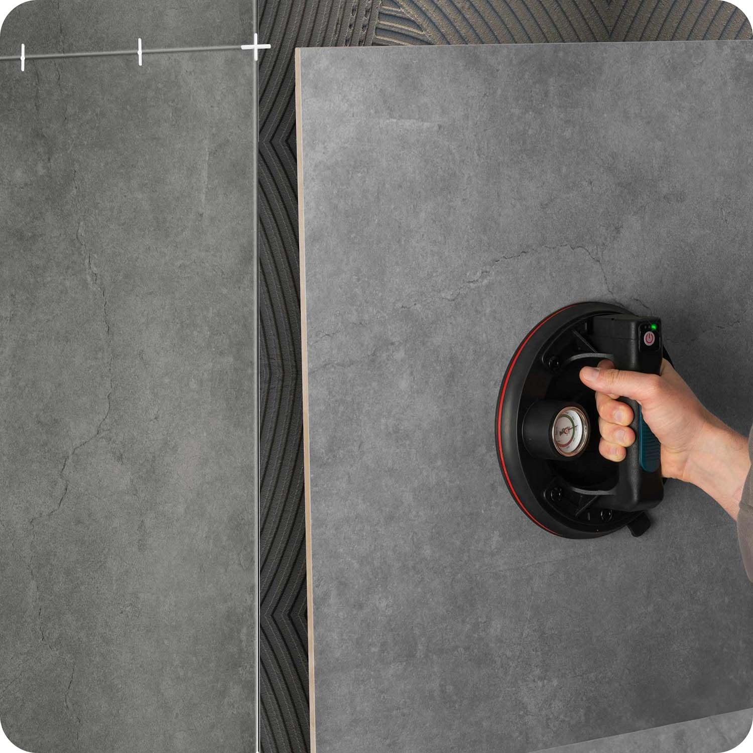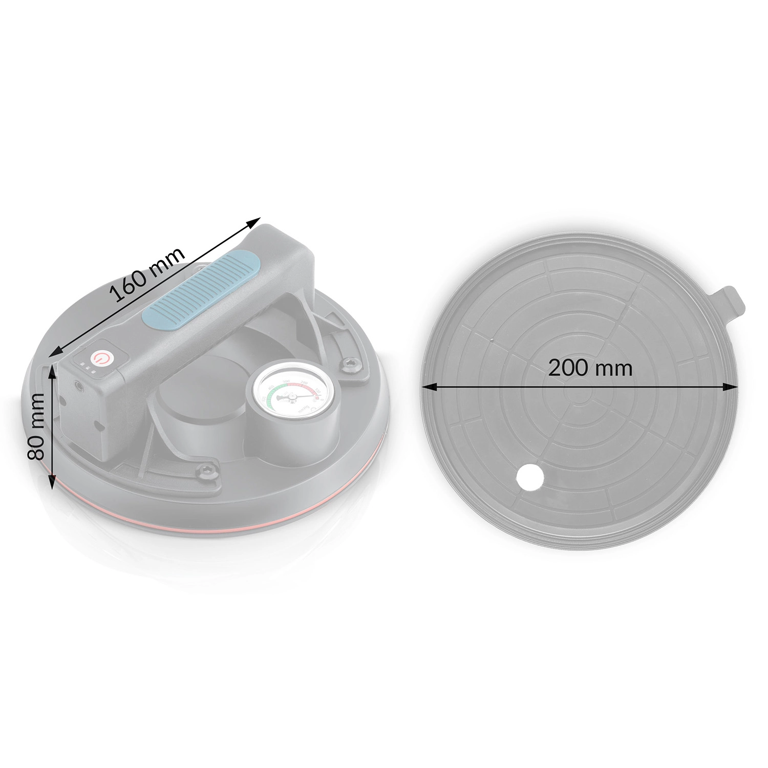 Tato kompaktní elektrická přísavka je navržena pro rychlou a bezpečnou manipulaci s těžkými panely, sklem, dlaždicemi či leštěným kamenem. Trojitá gumová těsnicí manžeta zajišťuje výbornou přilnavost, těsnost a tlumení vibrací, zatímco manometr s barevnou stupnicí poskytuje neustálou kontrolu nad úrovní podtlaku (optimálně 300–760 mmHg). Ergonomická rukojeť s tvarovaným úchopem zvyšuje pohodlí i při delší práci.