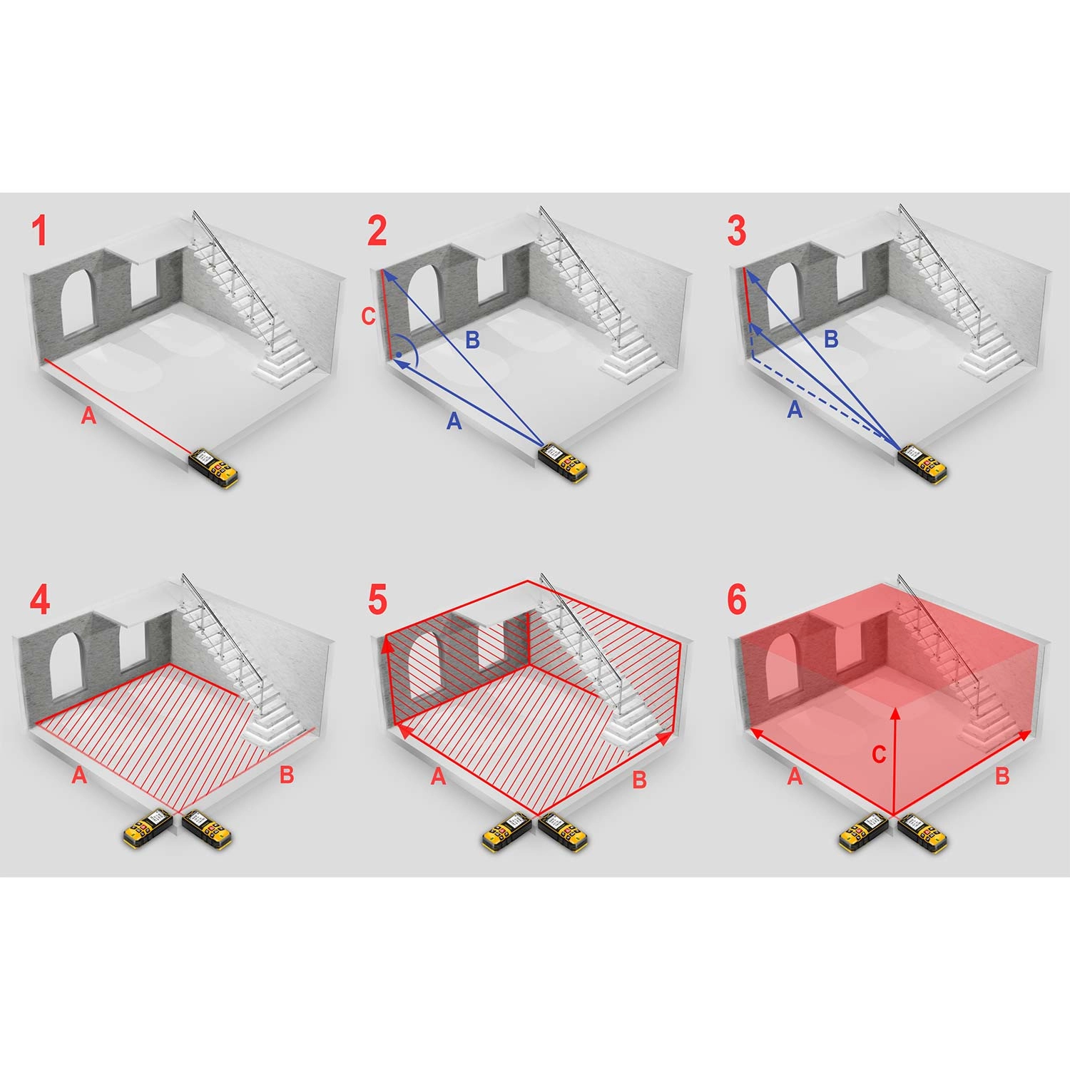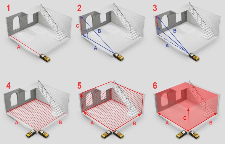 Zařízení zvládá měření vzdálenosti, plochy a objemu v několika krocích s okamžitým výpočtem. Pythagorova funkce umožňuje nepřímé měření výšek tam, kde není možné měřit přímo. Volitelný referenční bod měření (od paty nebo špičky přístroje) přináší flexibilitu v interiéru i exteriéru.