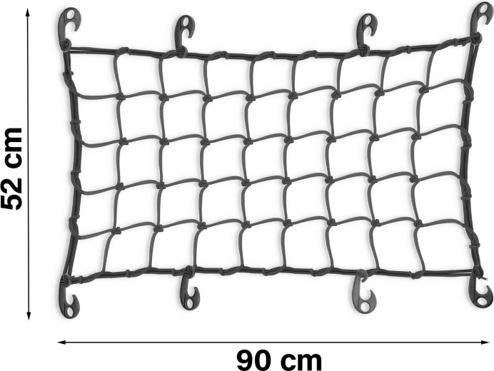 Elastická bungee konstrukce se přizpůsobí tvaru a velikosti nákladu a udrží vše pevně na místě během jízdy.