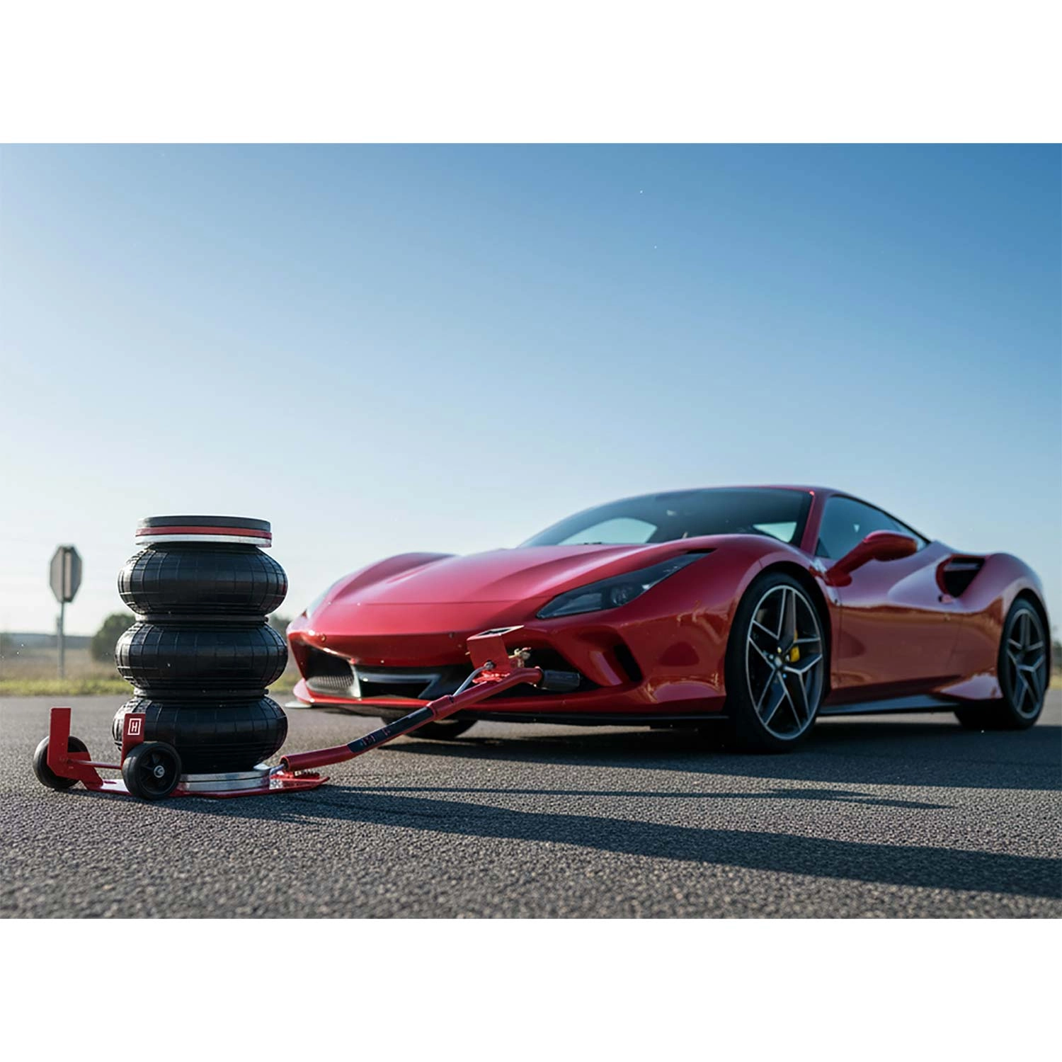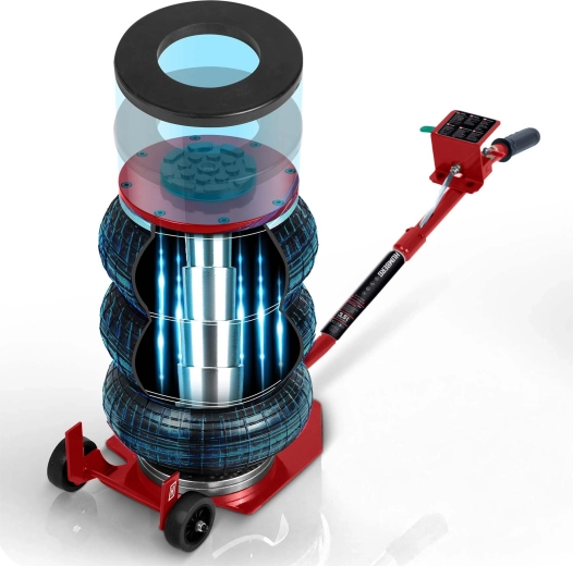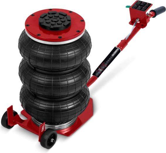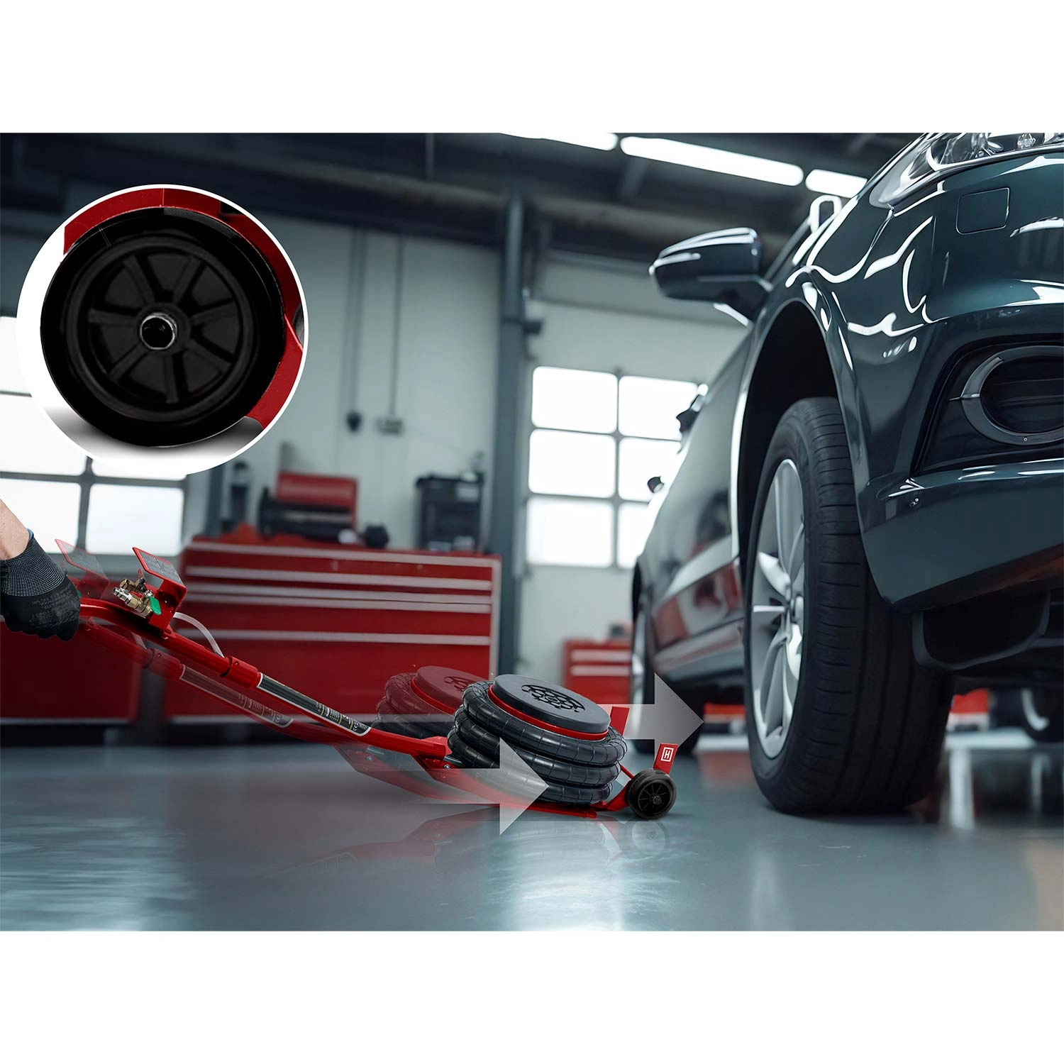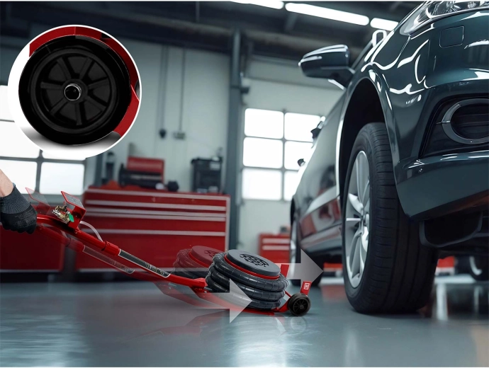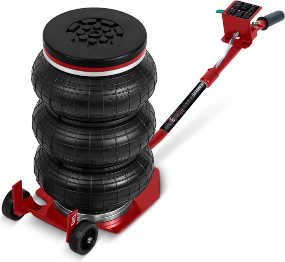 Vyztužené gumové vaky zvládnou vysoké zatížení. Velká kolečka a dlouhé madlo umožní snadné přesunutí pod vůz.