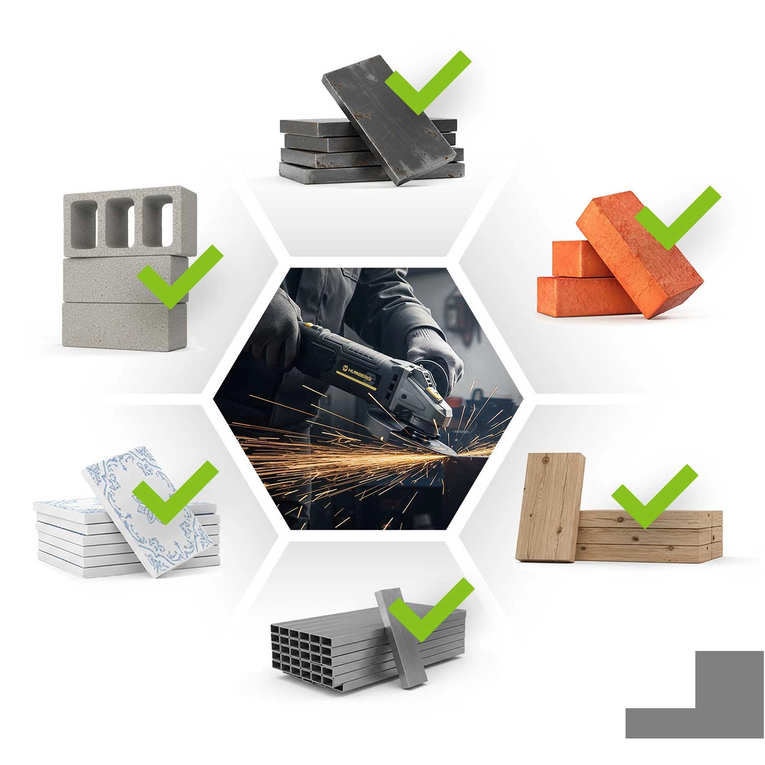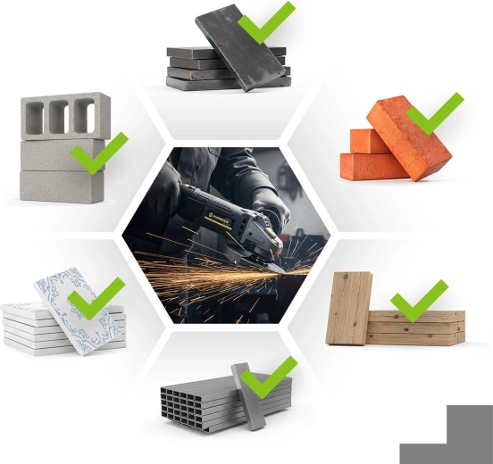 - Široké použití: řezání a broušení kovu, betonu, kamene, keramiky, cihel i plastů.
