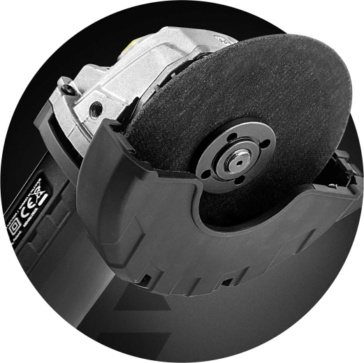 Součástí je bohatá výbava pro okamžité nasazení: 10 řezných kotoučů 125 mm, kovový ochranný kryt Quick‑Lock pro rychlé nastavení bez klíče a montážní klíč vždy po ruce. Bezpečnostní spínač Safety‑Switch brání nechtěnému spuštění a závit M14 zajišťuje kompatibilitu s běžným příslušenstvím.