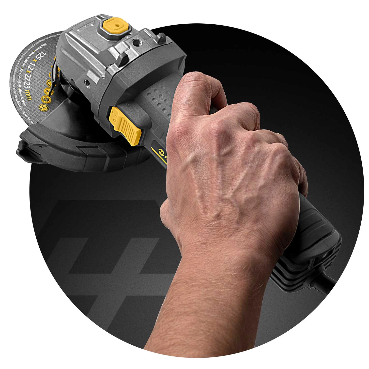 Úhlová bruska HUMBERG HM-410 nabízí ideální poměr výkonu, komfortu a bezpečnosti. Silný kartáčový motor 900 W si poradí s náročnými úkoly, zatímco regulace otáček 3000–12000 ot/min umožní přizpůsobit nástroj materiálu a typu práce. Díky kompaktním rozměrům a ergonomické protiskluzové rukojeti je manipulace jistá i v rukavicích.