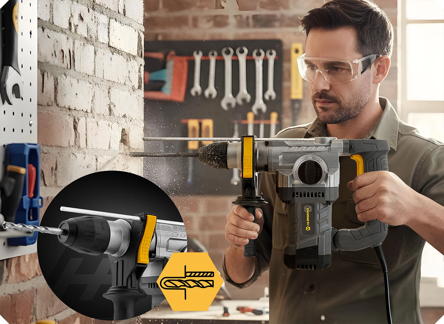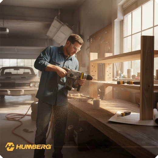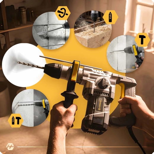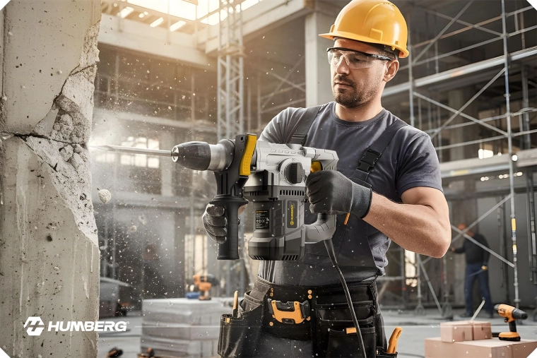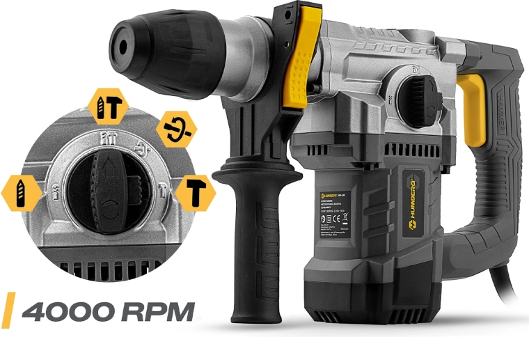Výkonné příklepové vrtací kladivo HUMBERG s motorem 1010 W a energií úderu 4 J zvládne vrtání i sekání do betonu, zdiva, dřeva a kovu. Rychlá výměna nástrojů díky uchycení SDS Plus, 4 pracovní režimy a regulace otáček pro maximální kontrolu. Včetně bohaté výbavy v odolném kufru a 2m napájecího kabelu pro pohodlnou práci.