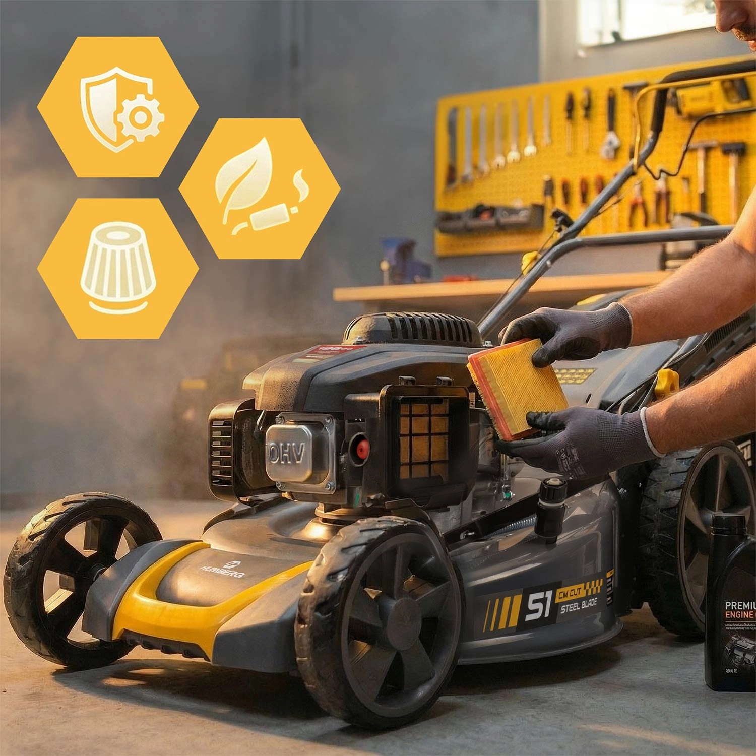 - Výkon a spolehlivost: 3,5 kW (≈ 4,8 HP), vysoký točivý moment, technologie OHV pro efektivní spalování.