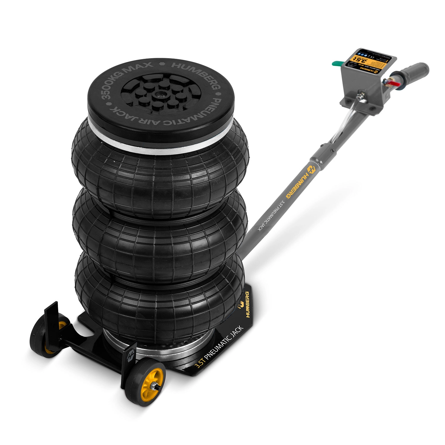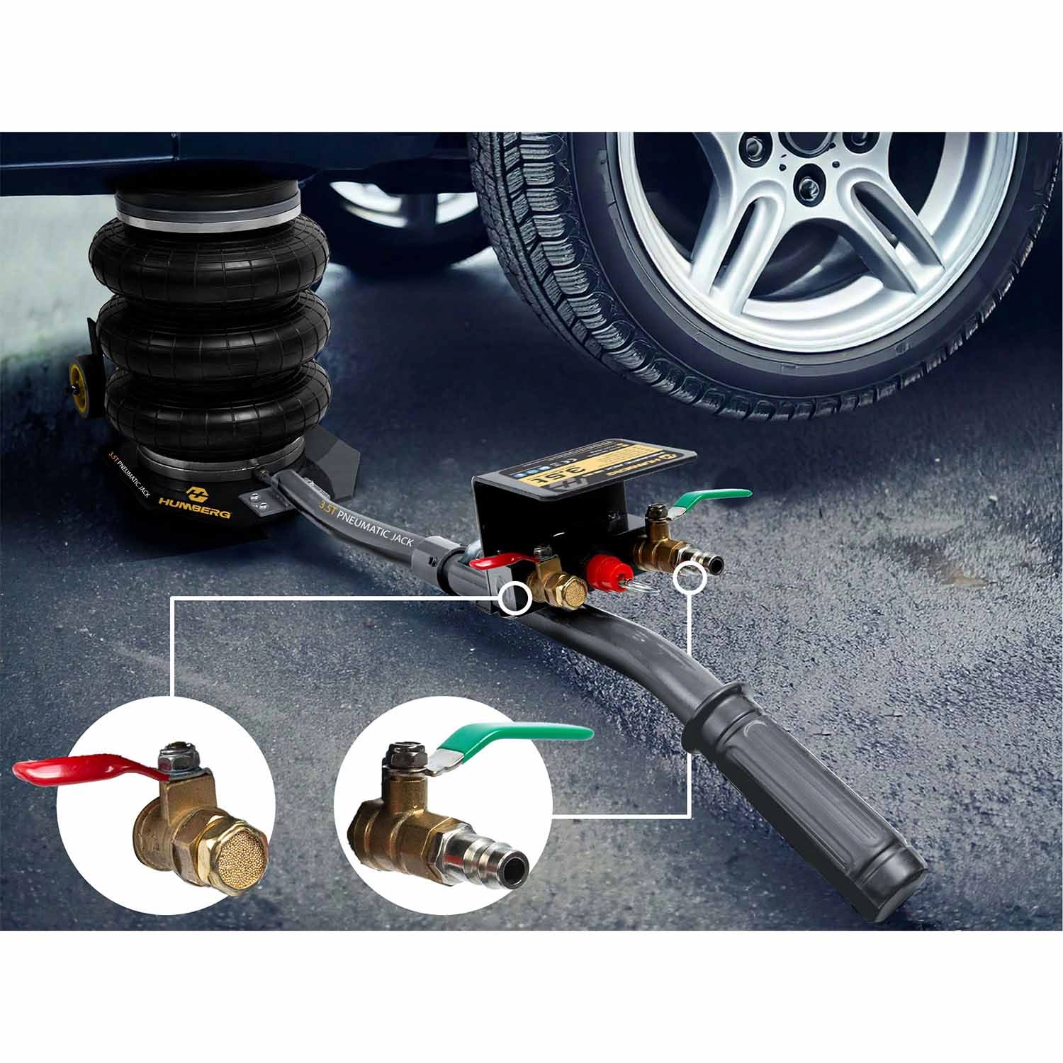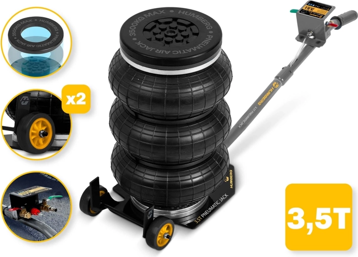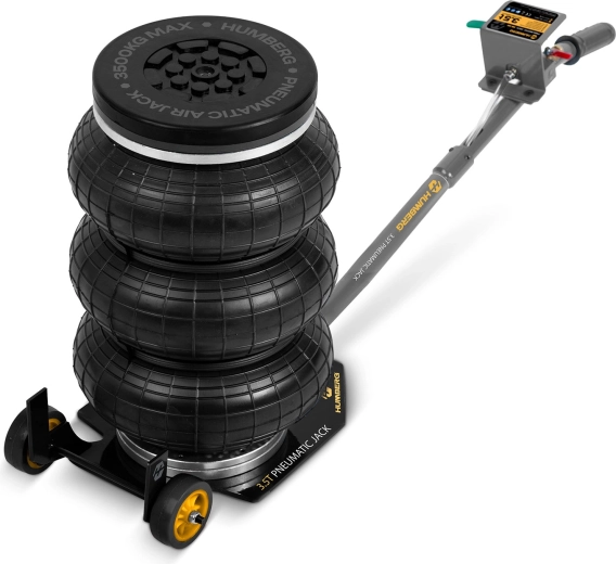 Pneumatický zvedák Humberg kombinuje vysokou nosnost 3,5 t, jednoduché ovládání a rychlou práci se stlačeným vzduchem. Díky rozsahu zdvihu 15–40 cm je ideální pro běžnou údržbu, výměnu kol i servis podvozku u osobních aut, SUV, crossoverů a lehkých užitkových vozidel.