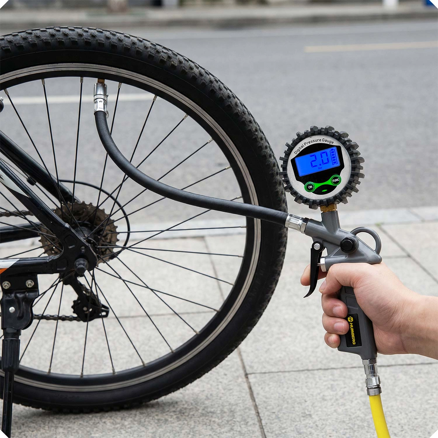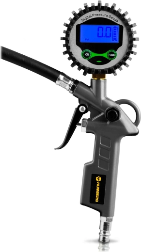 Digitální hušťák HUMBERG HM-260 je spolehlivý pomocník pro automobil, motorku i kolo. Velký podsvícený LCD displej umožňuje okamžitý a přesný odečet tlaku, přepínání jednotek pokryje všechny běžné standardy a ergonomická spoušť zajistí plynulé dohuštění přesně na požadovanou hodnotu.