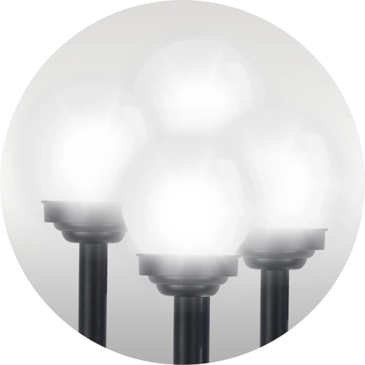 Stupeň krytí IPX4 chrání lampy před deštěm a stříkající vodou. Ideální pro celosezónní použití na zahradě.