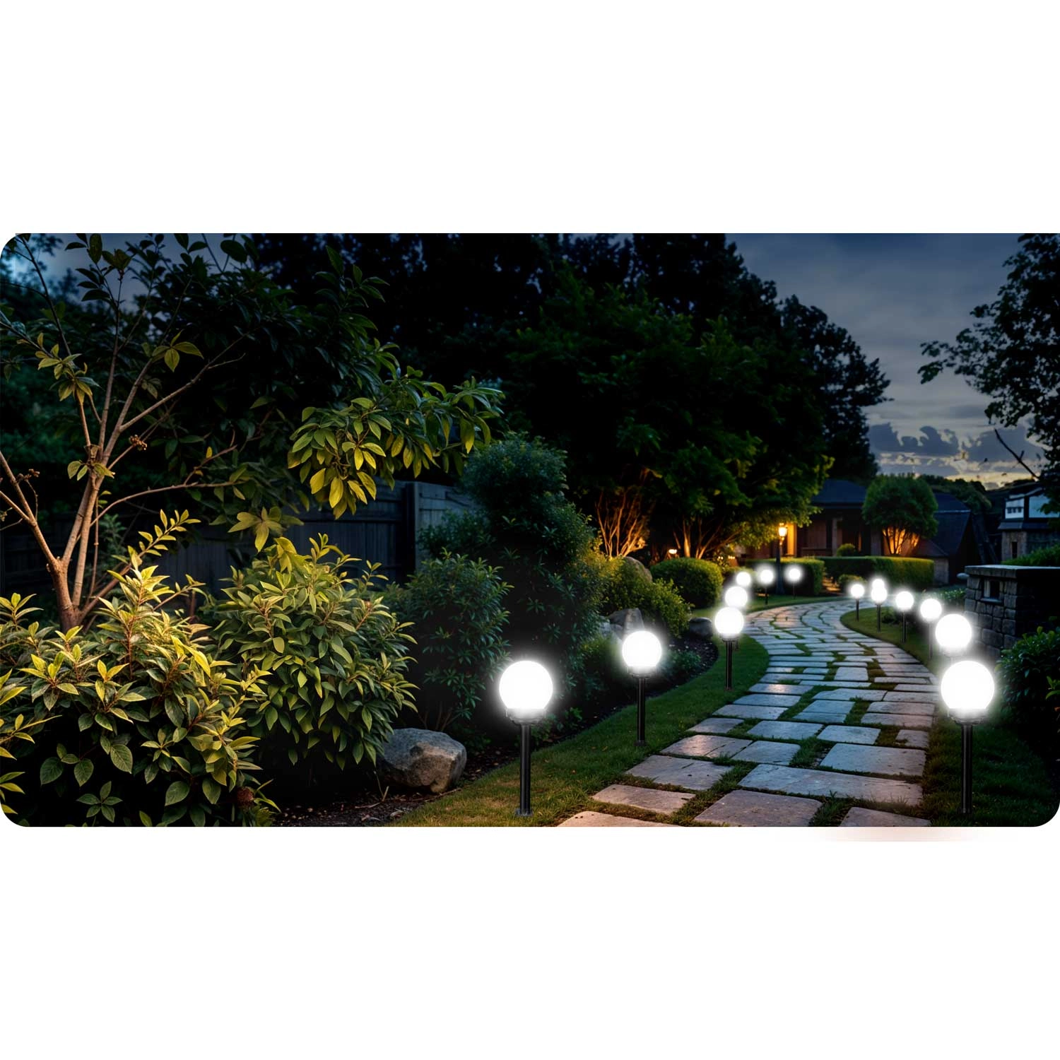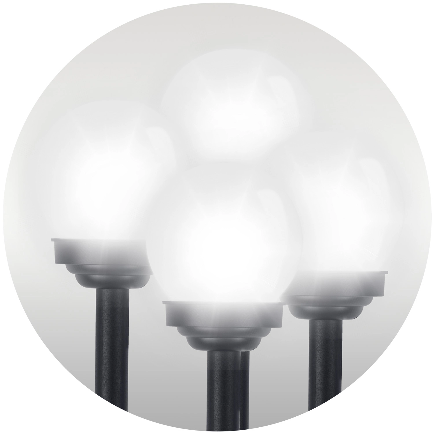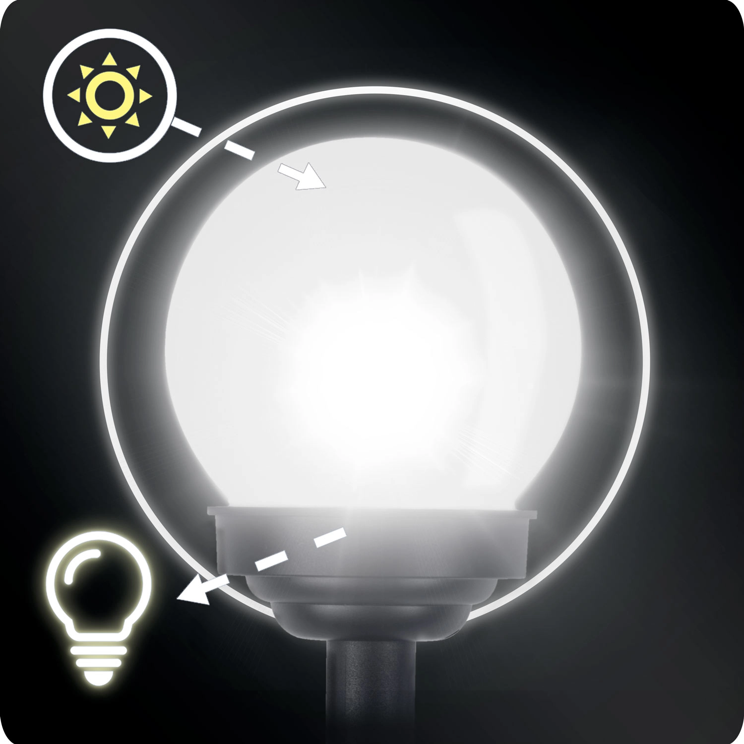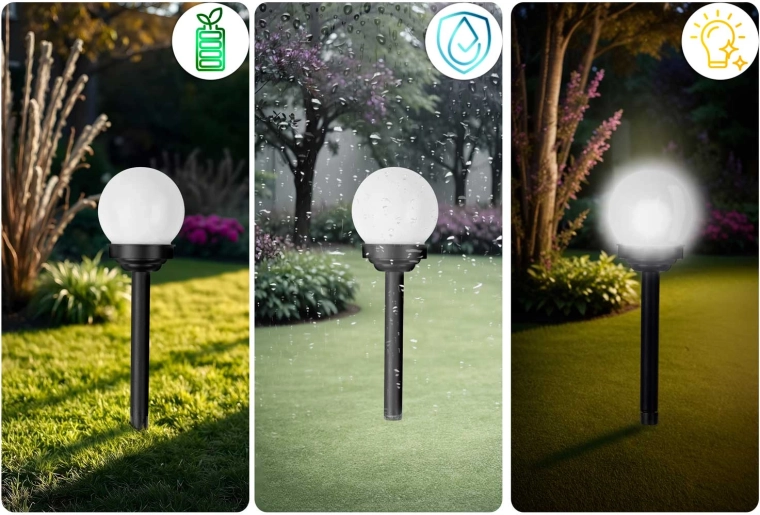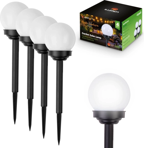 Proměňte svou zahradu v kouzelné místo. Čtyři solární koule na zapichovacích bodech se snadno instalují do trávníku či záhonů a díky čidlu světla se automaticky rozsvítí po setmění. Amorfní solární panel si poradí i s horšími světelnými podmínkami a akumulátor Ni‑MH 150 mAh zajistí příjemné večerní nasvícení cest a posezení.