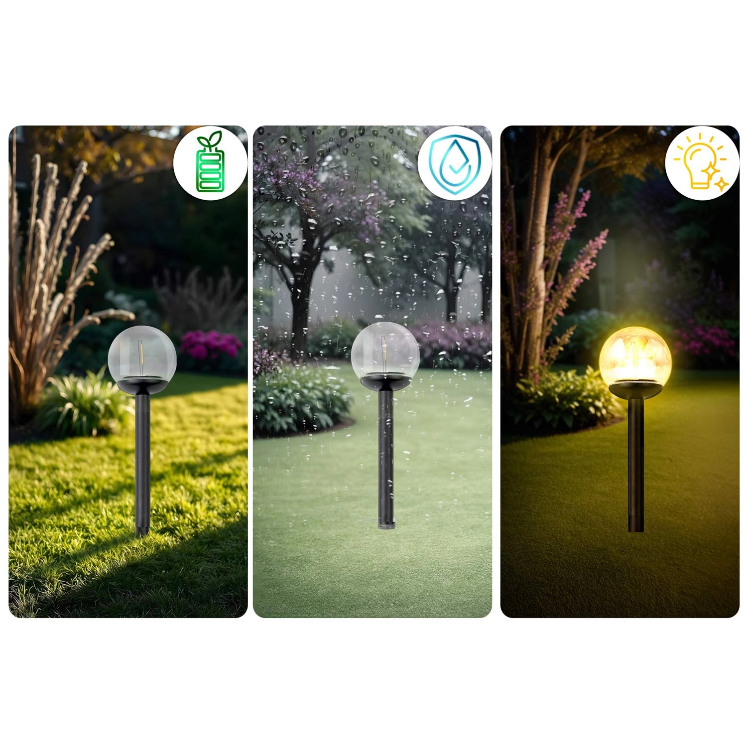 Elegantní solární lampy s čirou kulovou hlavou přinášejí útulné, teplé světlo a moderní vzhled do každé zahrady. Univerzální design se skvěle hodí mezi vyšší květiny a byliny i podél chodníků a příjezdových cest. Instalace je rychlá – stačí zapíchnout hrot do země a nechat slunce pracovat.