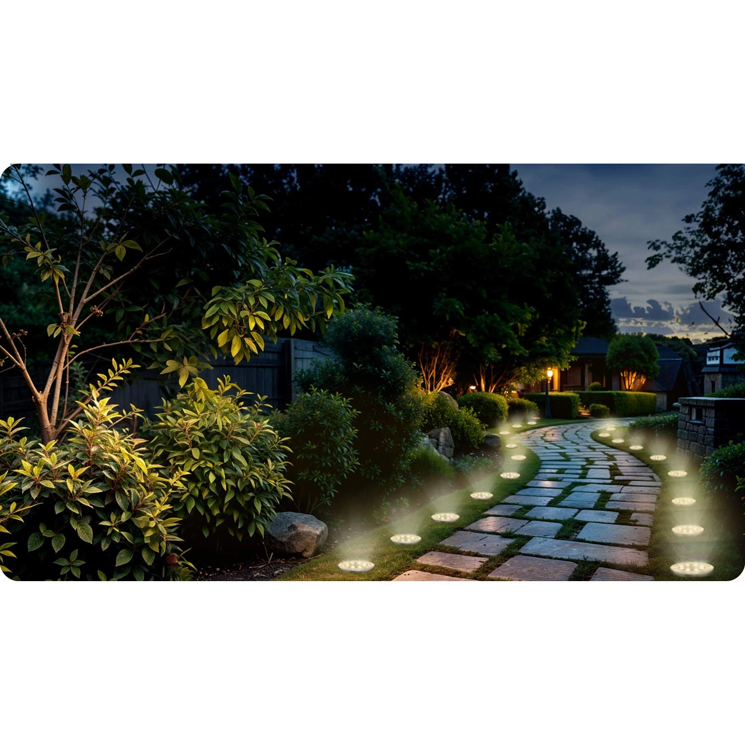 Nízkoprofilová světla vytvářejí příjemné vedení podél chodníků a zvyšují bezpečí při pohybu po setmění.