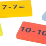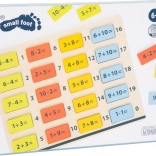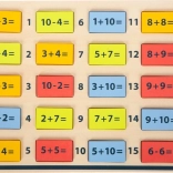 Děti si snadno procvičí základní aritmetiku díky přehledně uspořádané tabulce a čitelným příkladům na dřevěných dílcích.