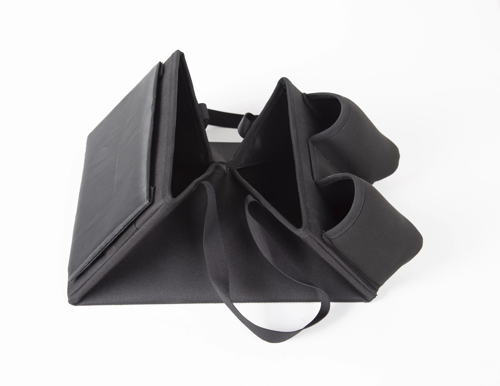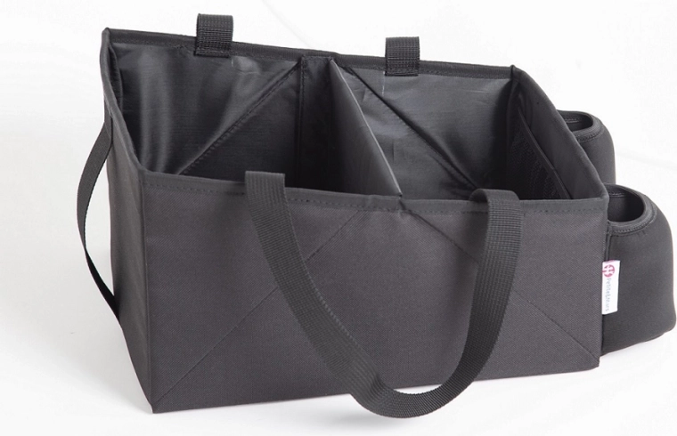 Snadné uchycení bezpečnostním pásem na zadním sedadle nebo mezi dvě dětské sedačky. V kufru drží tvar a udrží věci na místě.