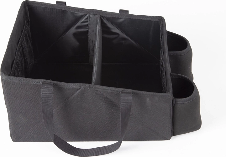 Box nabízí velký vnitřní prostor rozdělený do 2 přihrádek, doplněný o 2 síťované kapsy na příslušenství. Na čelní straně najdete 2 držáky na láhve nebo termosky, takže nápoje zůstanou vždy po ruce. Konstrukce je skládací – během vteřiny jej složíte naplocho, přenesete za odolné rukojeti a zase rozložíte.