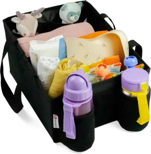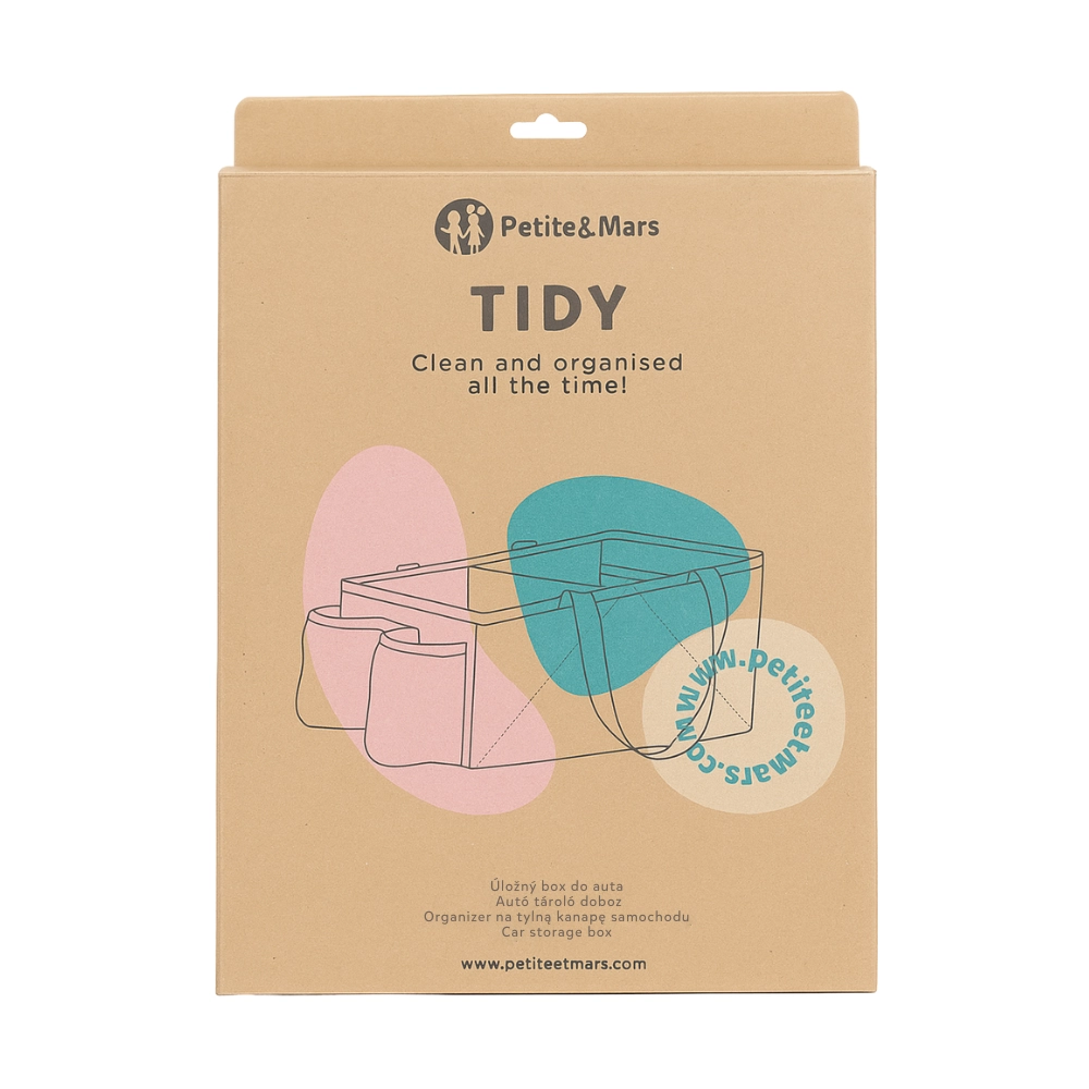 Praktický organizér do auta Petite&Mars Tidy pomůže udržet vše potřebné na dosah a bez nepořádku. Je ideální pro rodiny s dětmi – vejde se mezi dvě autosedačky, snadno se připevní bezpečnostním pásem a stejně dobře funguje i v kufru. Díky pevným stěnám a promyšlenému členění přehledně uloží hračky, pleny, svačiny, ubrousky i drobnosti.