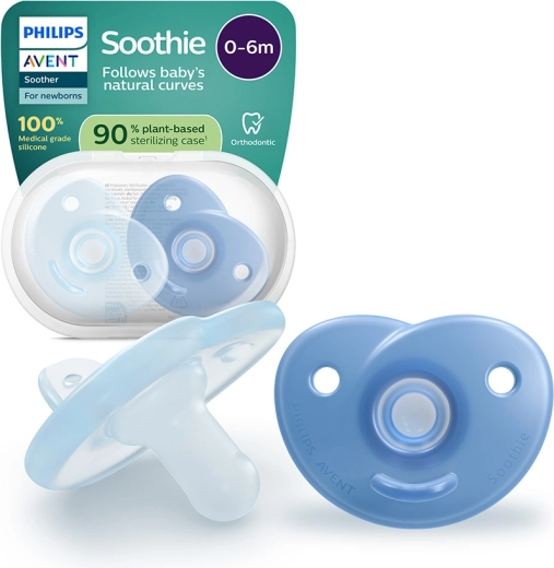 Uklidněte své miminko s šidítkem Philips Avent Soothie pro chlapce 0–6 měsíců v balení 2 ks. Jednodílné provedení ze 100% silikonu lékařské kvality je měkké, flexibilní a hygienické. Srdcovitý štítek kopíruje křivky obličeje a nezakrývá nosánek, zatímco symetrická kulatá savička podporuje přirozené sání. Součástí je přenosné sterilizační pouzdro (z 90 % rostlinný materiál) pro rychlou hygienu doma i na cestách.