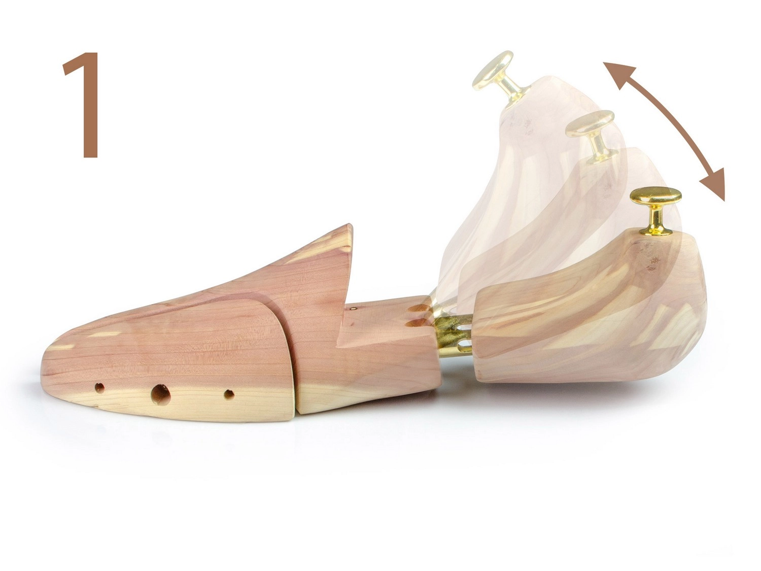 Cedrové napínáky MASSIDO jsou navrženy tak, aby co nejvěrněji napodobily tvar lidské nohy. Díky přesnému vyplnění špičky i patní části pomáhají udržet původní tvar obuvi, minimalizují lámání a krabatění kůže a prodlužují životnost formální i volnočasové obuvi.