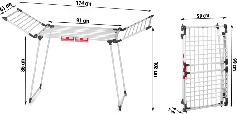 Rozšiřte sušicí prostor během chvilky a využijte praktické klipsy pro ponožky a drobné prádlo.