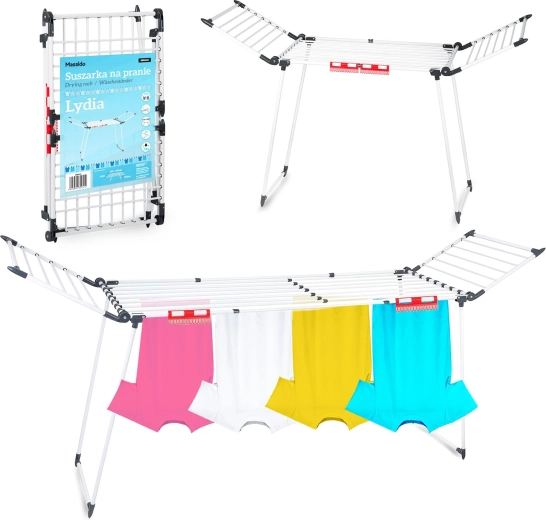 Rozkládací sušák na prádlo Lydia je ideální volbou pro domácnosti, které chtějí sušit efektivně a úsporně. Teleskopická křídla umožní rychle zvětšit nebo zmenšit sušící plochu přesně podle aktuální potřeby, zatímco promyšlené rozestupy mezi příčkami podporují rychlé a rovnoměrné odpařování.
