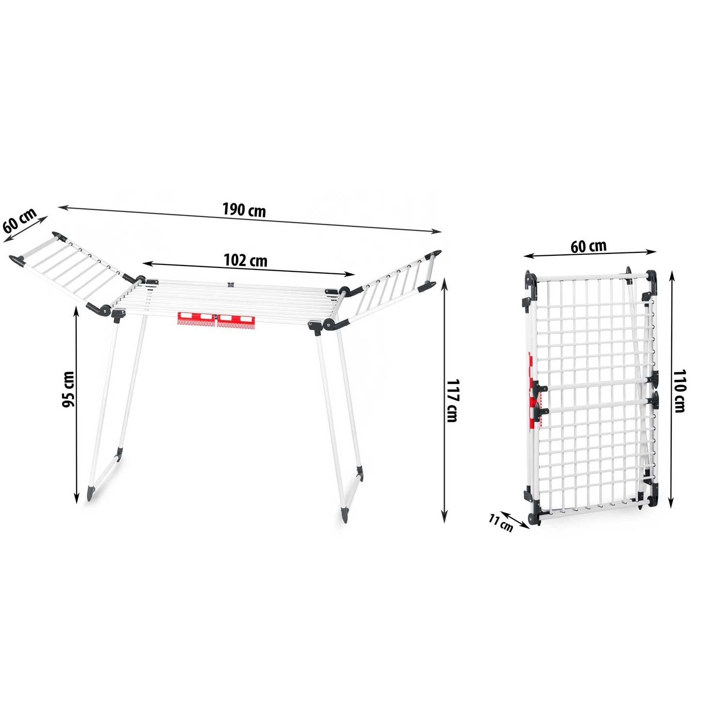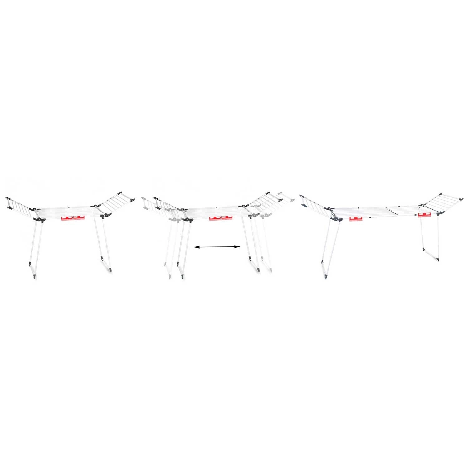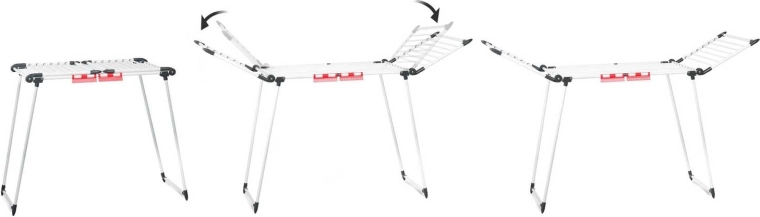 Rozšiřte nebo zmenšete šířku sušáku jedním tahem. Integrované klipy a držáky na spodní prádlo šetří místo a udrží vše na svém místě.