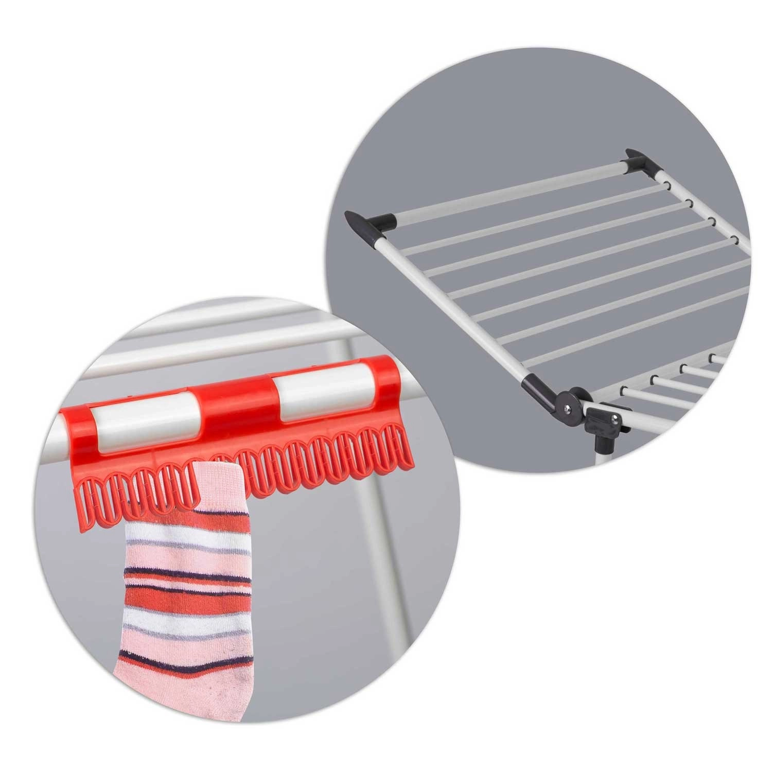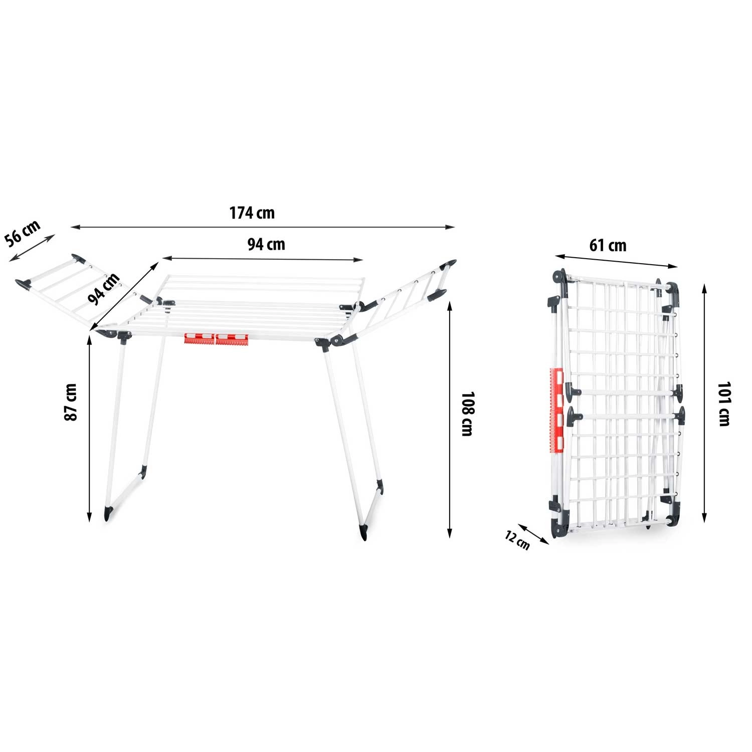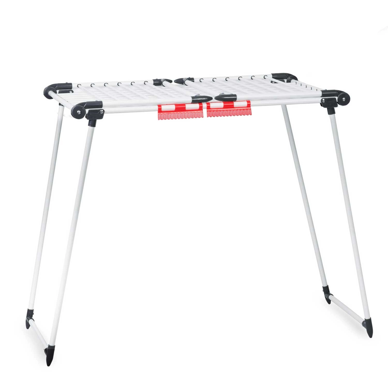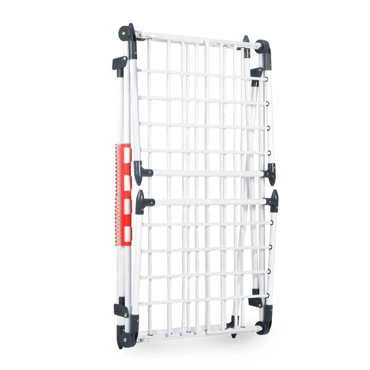 4 rozkládací křídla rozšíří sušicí plochu přesně tehdy, když ji potřebujete, zatímco speciální úchyty na spodní i drobné prádlo šetří místo na hlavních příčkách. Silné tyče navíc pomáhají omezit mačkání, takže oblečení často není potřeba ani žehlit.