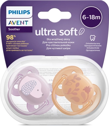Philips Avent Ultrasoft Premium je navržen pro miminka s citlivou pokožkou. Mimořádně měkký a pružný štít se přizpůsobí tvaru tváře, aby minimalizoval tlak a omezil zarudnutí. Ortodontická, symetrická savička ze 100% silikonu je jemná, odolná a připomíná přirozený pocit sání.