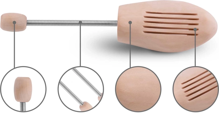 Dopřejte svým botám profesionální péči. Pružinová napínadla MASSIDO z borovicového dřeva okamžitě vyrovnávají kožený svršek, napínají špičku i nárt a urychlují vysychání po nošení. Díky účinné absorpci vlhkosti přírodním dřevem zůstává obuv svěží a bez nevzhledných záhybů.