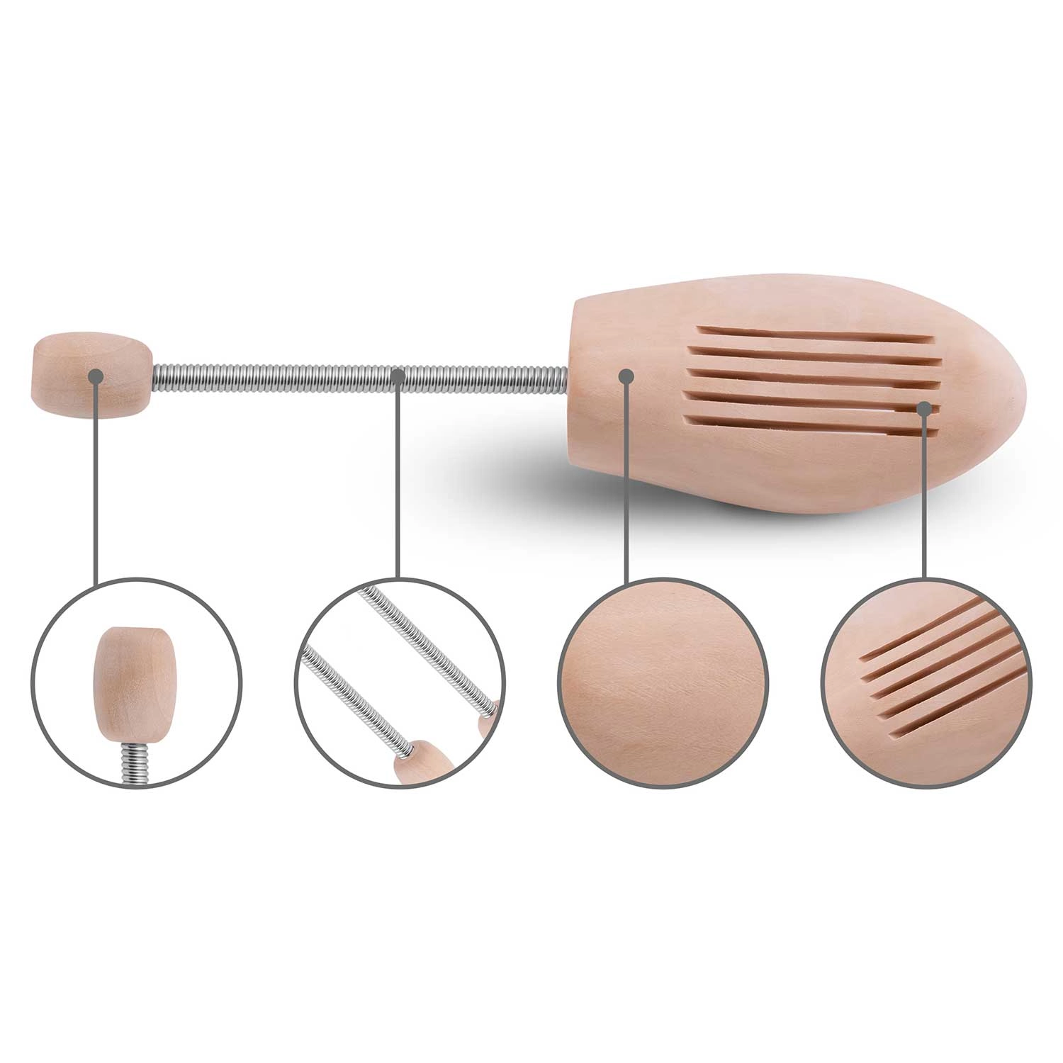 Udržujte své elegantní boty v perfektním tvaru s dřevěnými napínadly MASSIDO. Díky pružinovému mechanismu a přírodnímu dřevu borovice napínadla zamezují vzniku záhybů, udržují tvar obuvi a absorbují vlhkost, čímž prodlouží životnost vašich bot. Velikost 42/43, sada 2 ks.