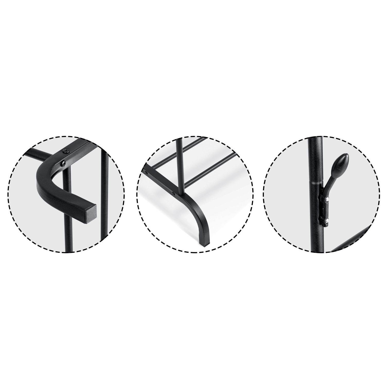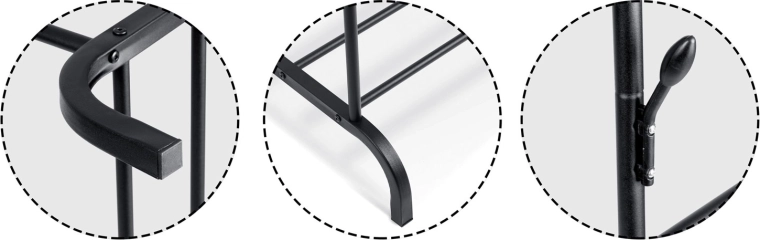 Díky pevné ocelové konstrukci a nízké hmotnosti se věšák snadno přenáší a zároveň zůstává stabilní. Otevřená konstrukce zajišťuje perfektní přehled a rychlý přístup k vašim věcem – skvělé pro studenty, rodiny s dětmi i jako dočasné řešení při rekonstrukci.