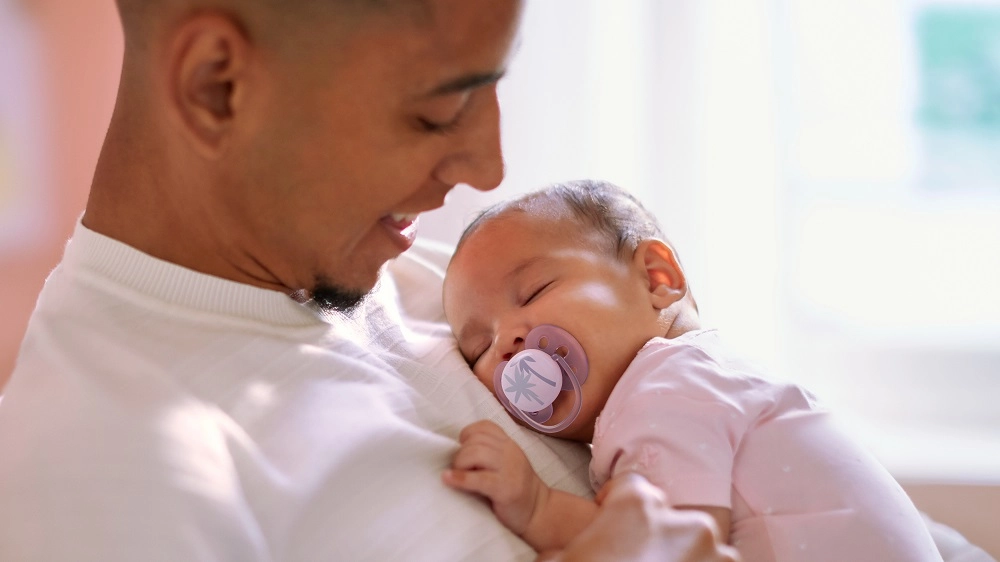 Symetrický tvar z 100% potravinářského silikonu podporuje přirozený vývoj ústní dutiny a působí miminku přirozeně.
